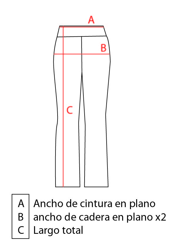 TALLE S: (A) CONTORNO CINTURA: 61CM / (B) LARGO 97CM / (C) CONTORNO DE CADERA: 72CM
