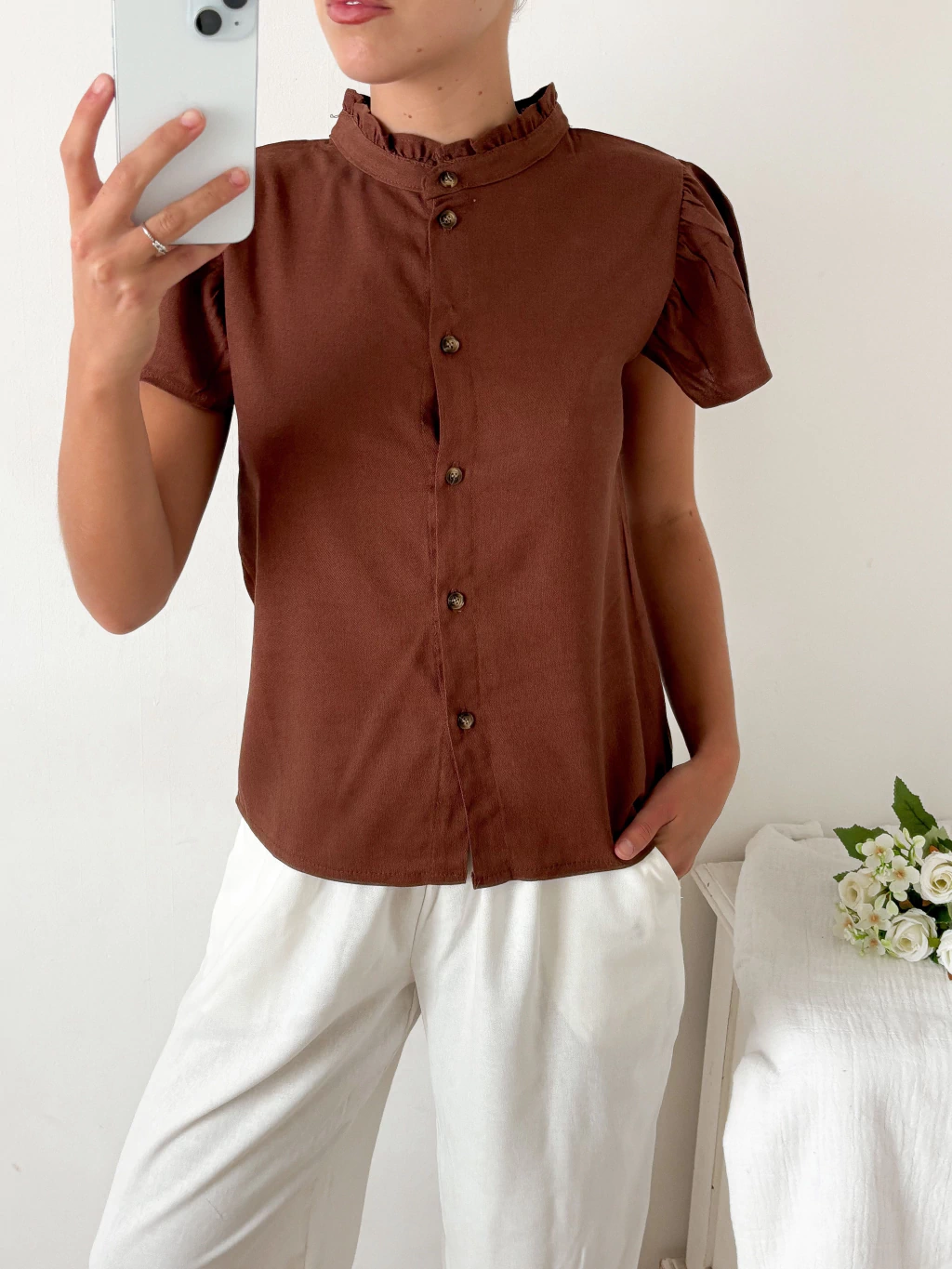 Si buscas una prenda dulce, femenina y súper combinable, esta camisa es la indicada💕 El voladito en el cuello es un detalle único que la hace especial, y las mangas tipo mariposa le dan ese toque romántico y una forma preciosa ✨