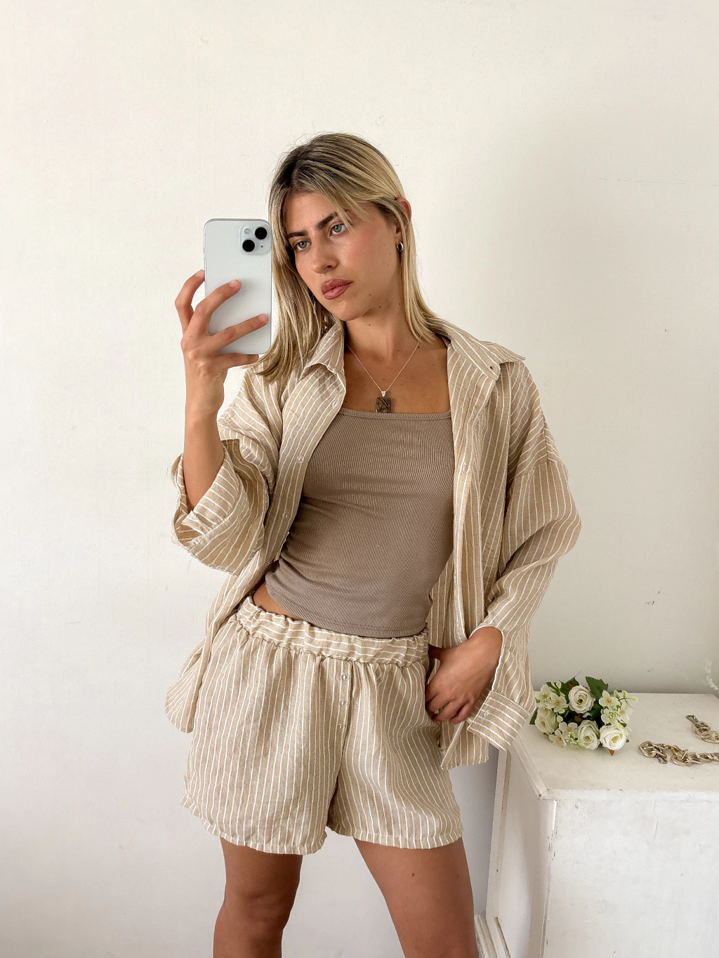 Esta camisa de lino rayada es un clásico infaltable en el placard. El lino es ese material que nunca falla: elegante, fresco y de excelente calidad, ideal para la temporada primavera-verano ✨