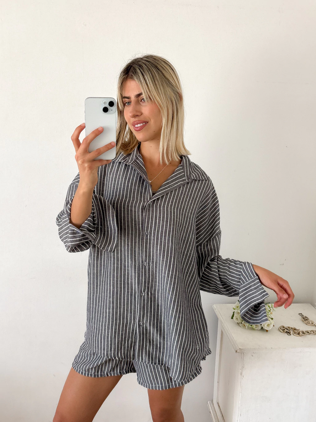 Es súper cómoda y versátil, podés usarla abierta con un top abajo, cerrada para un look más clásico o incluso anudada para algo canchero 💕. Las rayas, que están full tendencia, le dan ese plus moderno que la hace única.