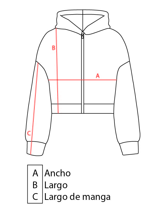 TALLE S: (A) ANCHO DE SISA A SISA: 52CM / (B) LARGO: 54CM / (C) MANGA: 60CM