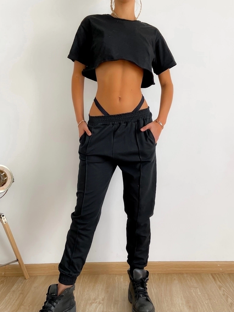 Jogger rustico chupin con recorte y cintura elastizada