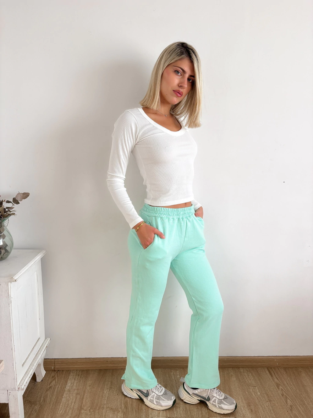 Detalles: Bolsillos y tajo en botamanga
