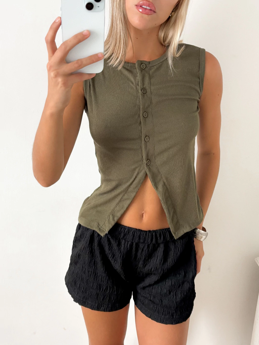 Esta remera es todo lo que está bien💞 Tiene botoncitos que la hacen re tierna y el detalle de la abertura le da un toque canchero y distinto 😍