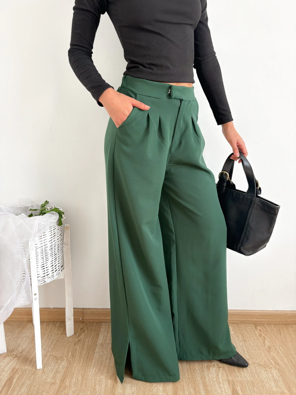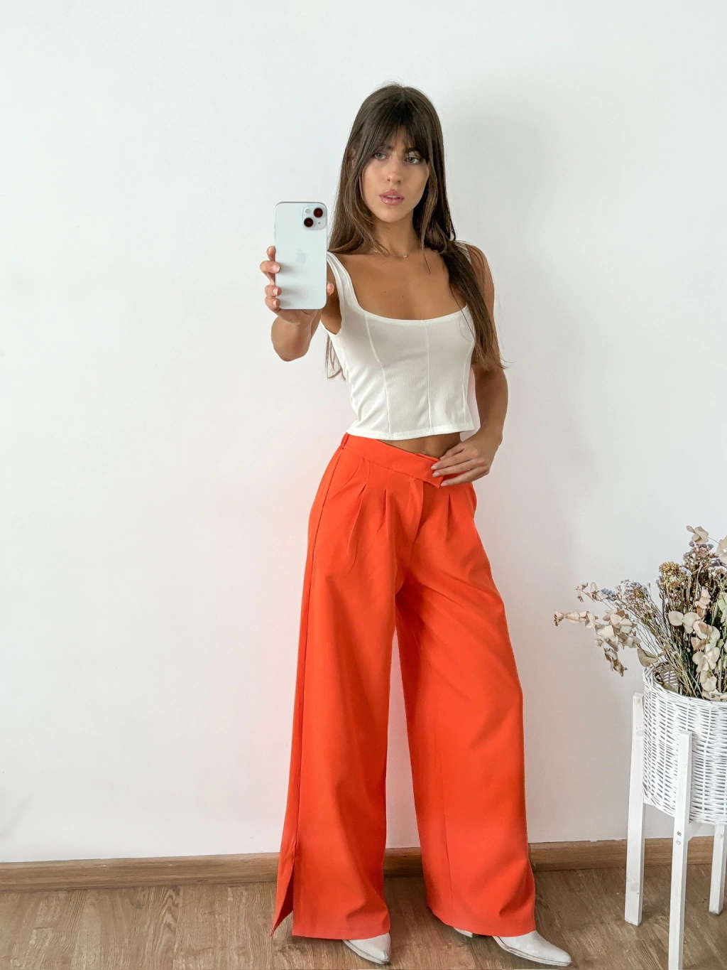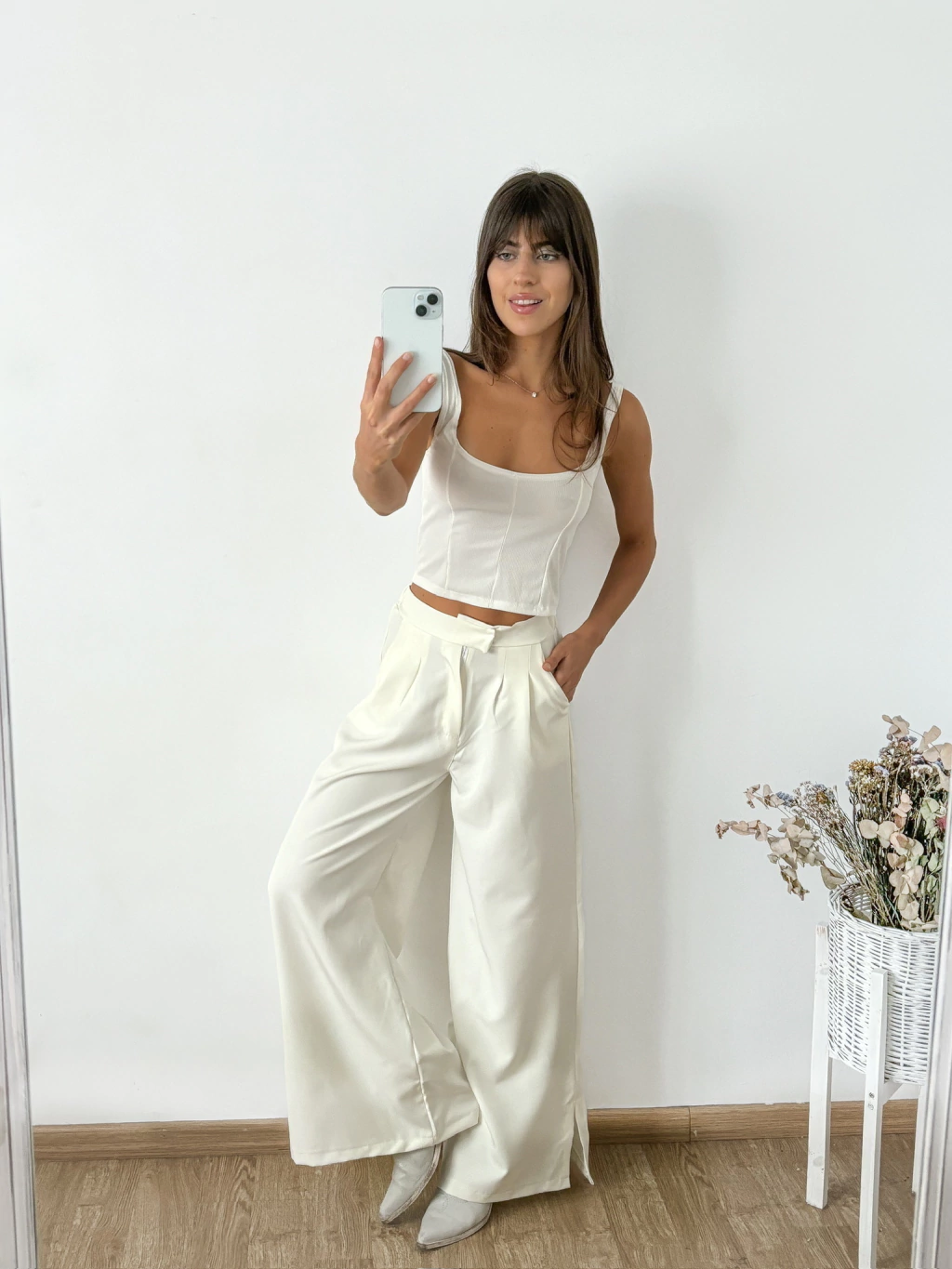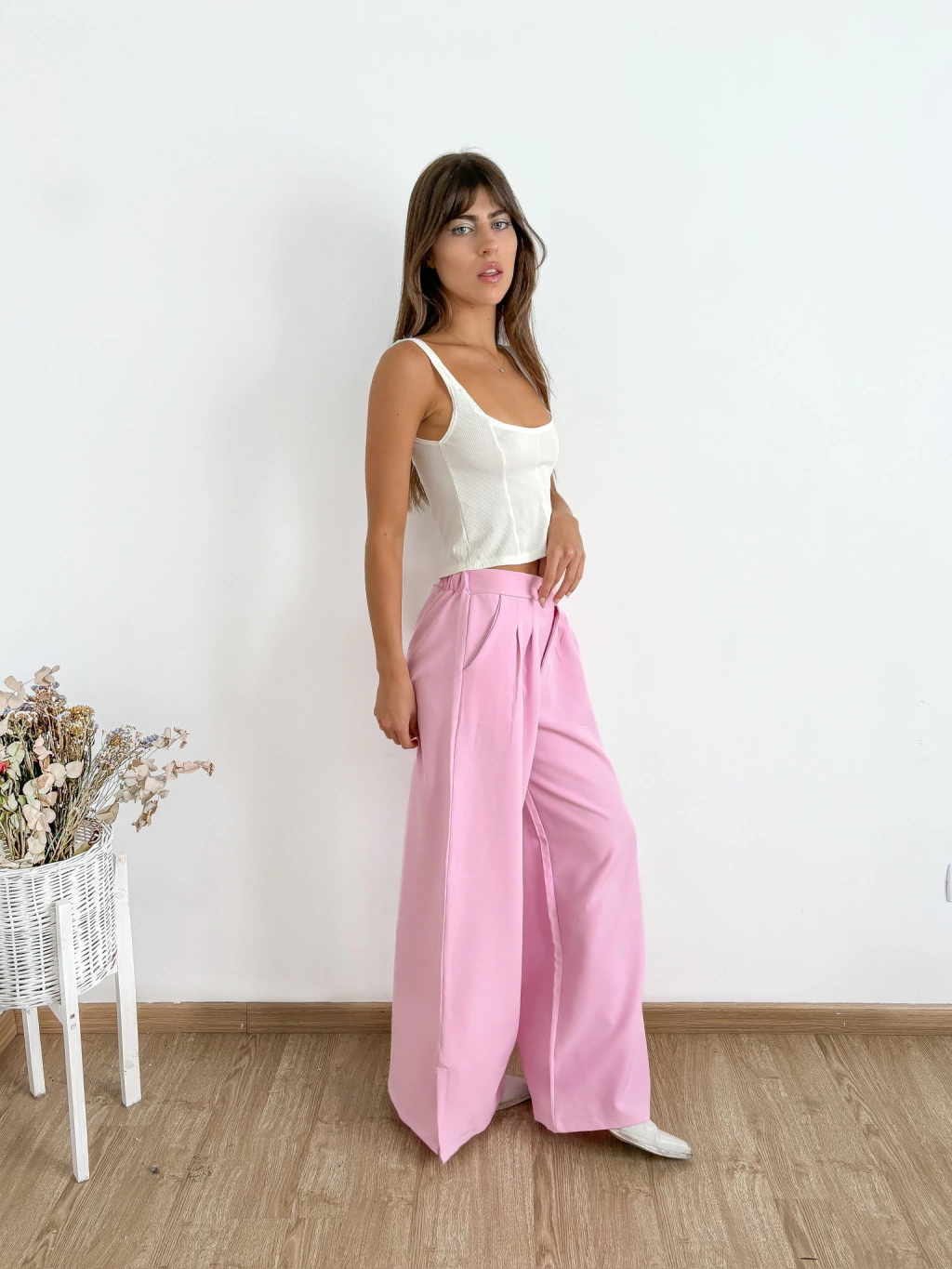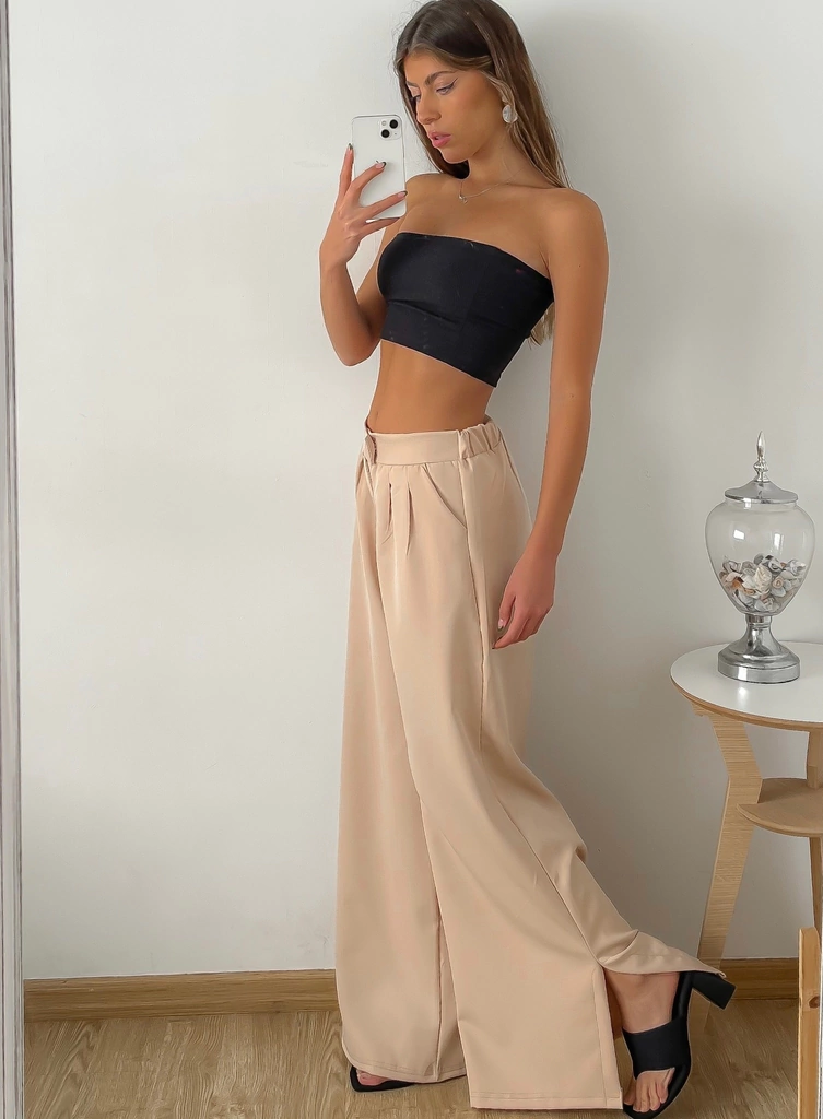 Palazo crepe sastrero con cintura trasera elastizada y tajo en botamanga