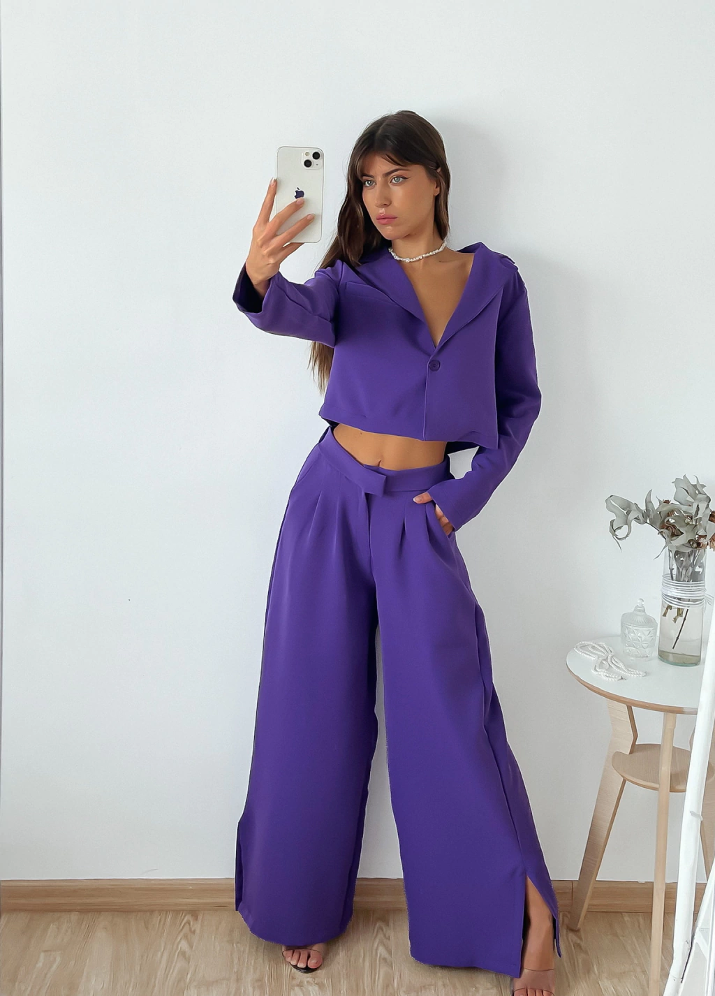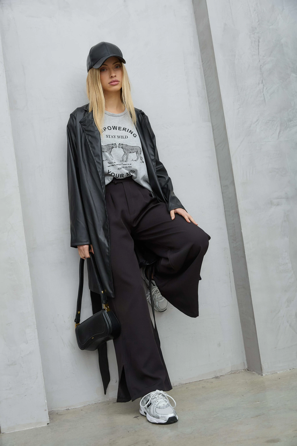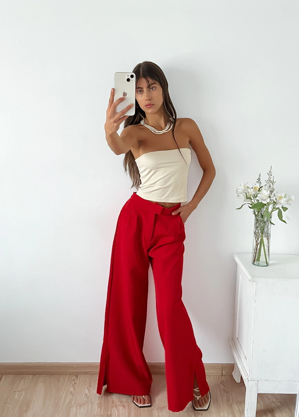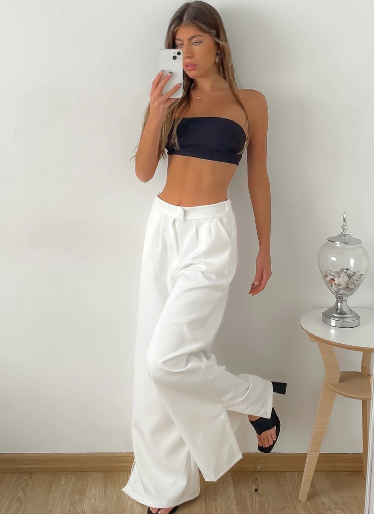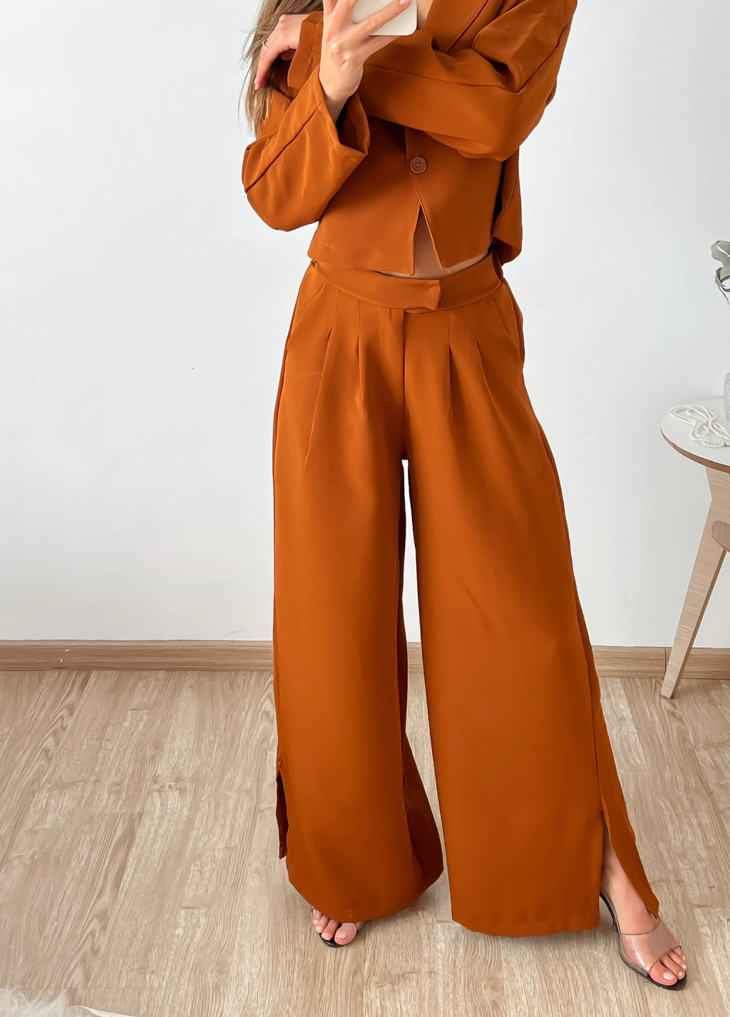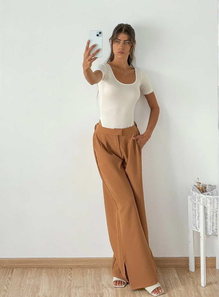 Palazo crepe sastrero con cintura trasera elastizada y tajo en botamanga