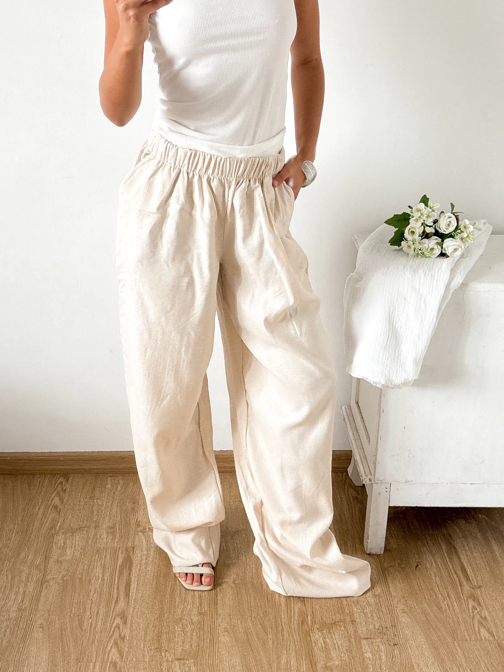 Palazo lino sastrero botamanga ancha bolsillos laterales y cintura elastizada