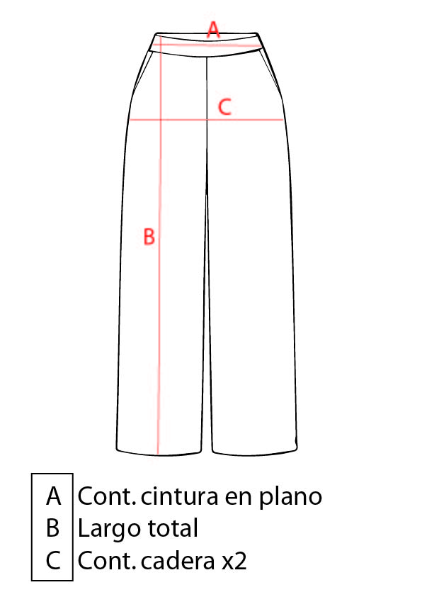 TALLE S: (A) CONTORNO DE CINTURA: 54CM / (B) LARGO: 94CM / (C) CONTORNO DE CADERA: 100CM