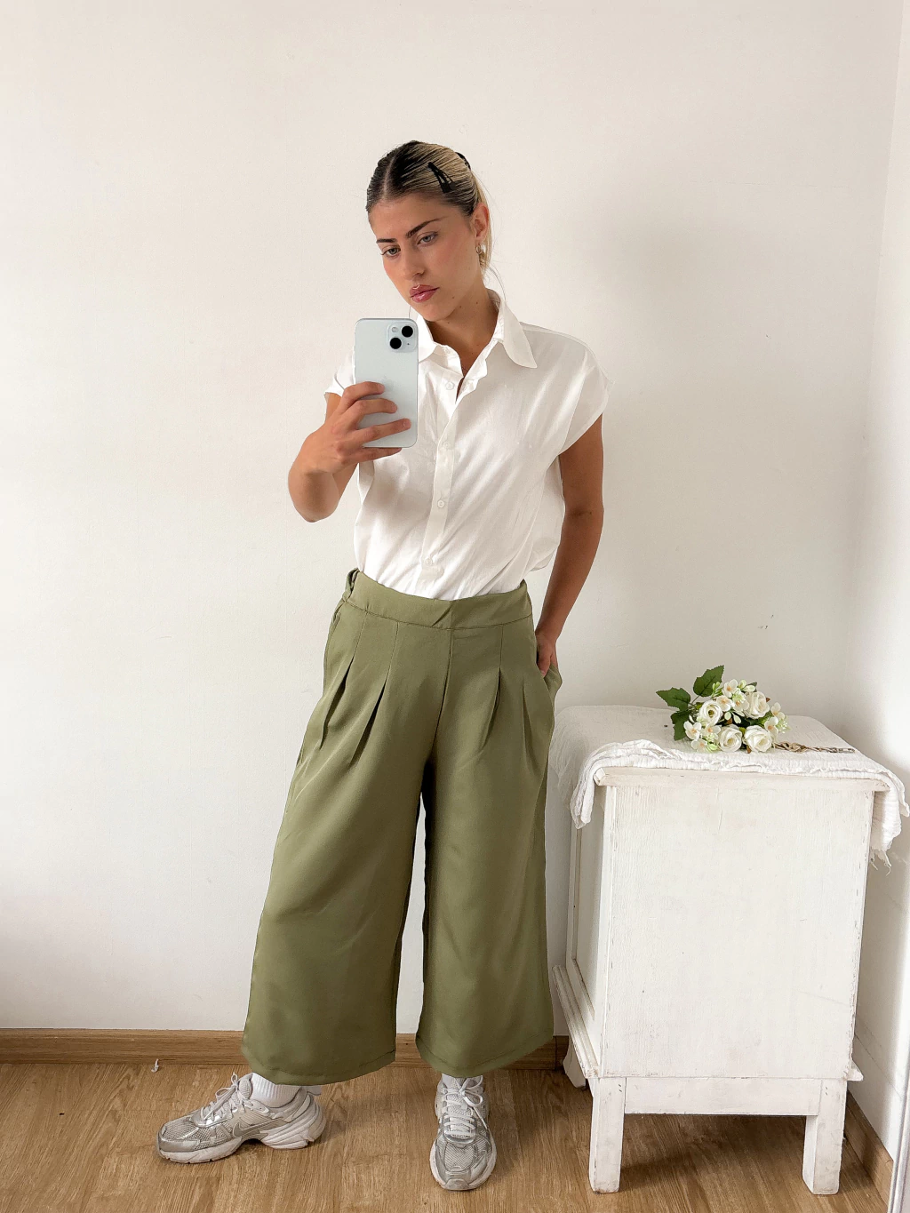 El corte midi lo hace distinto y moderno, queda sueltito y con un movimiento súper lindo que estiliza un montón. No trae botones al frente, sino que es liso con cierre al costado, lo que le da ese aire elegante y prolijo que lo hace fácil de llevar tanto en looks casuales como en ocasiones más formales🥰