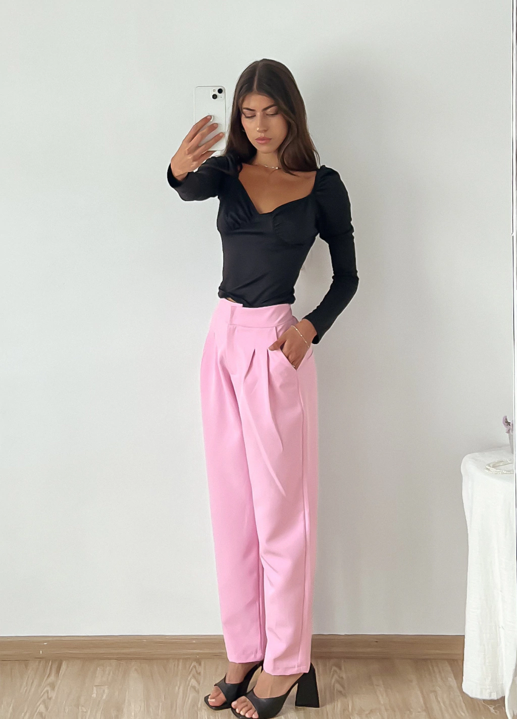 Pantalón sastrero con pinzas, bolsillos, y cintura trasera elastizada