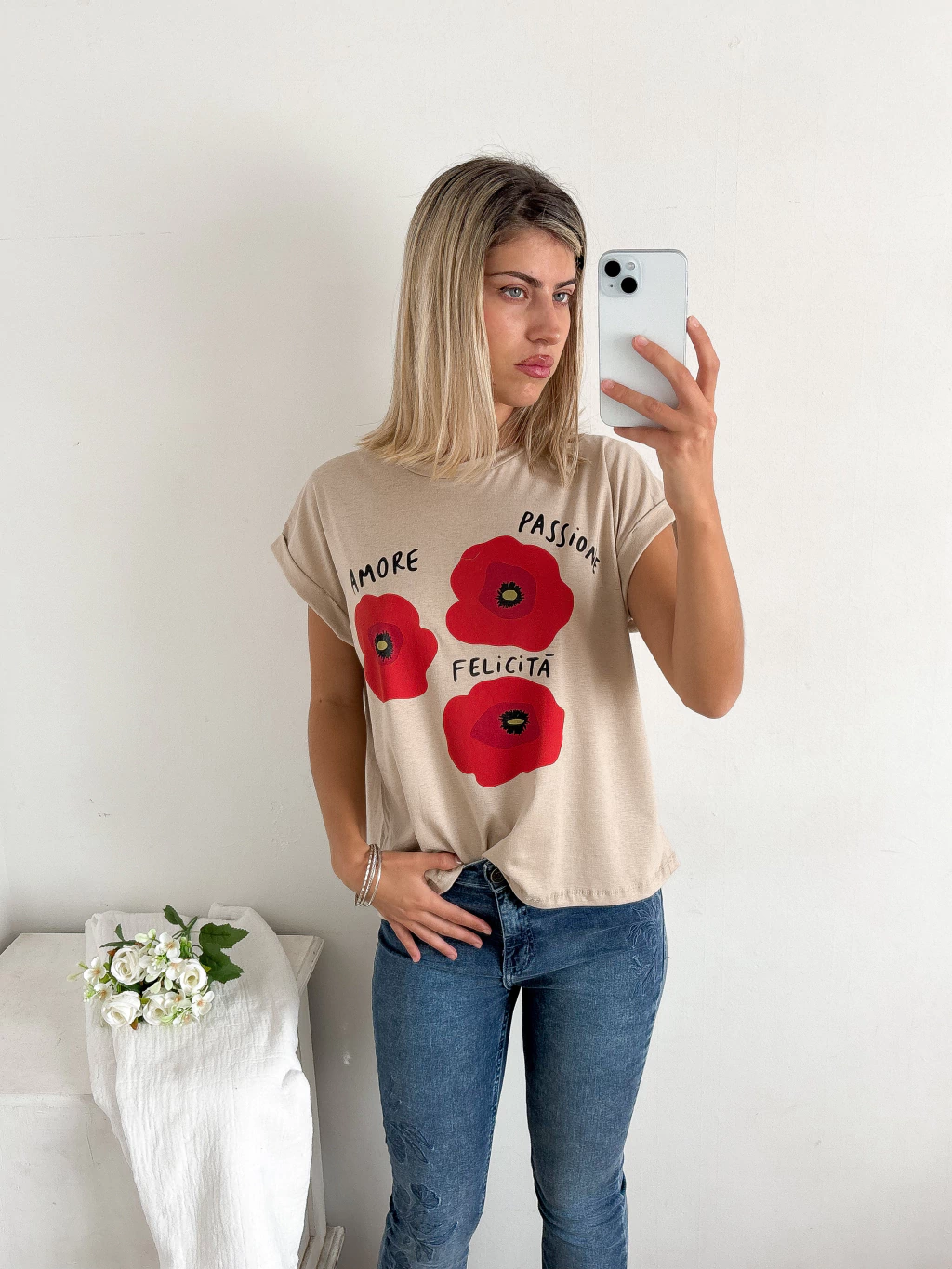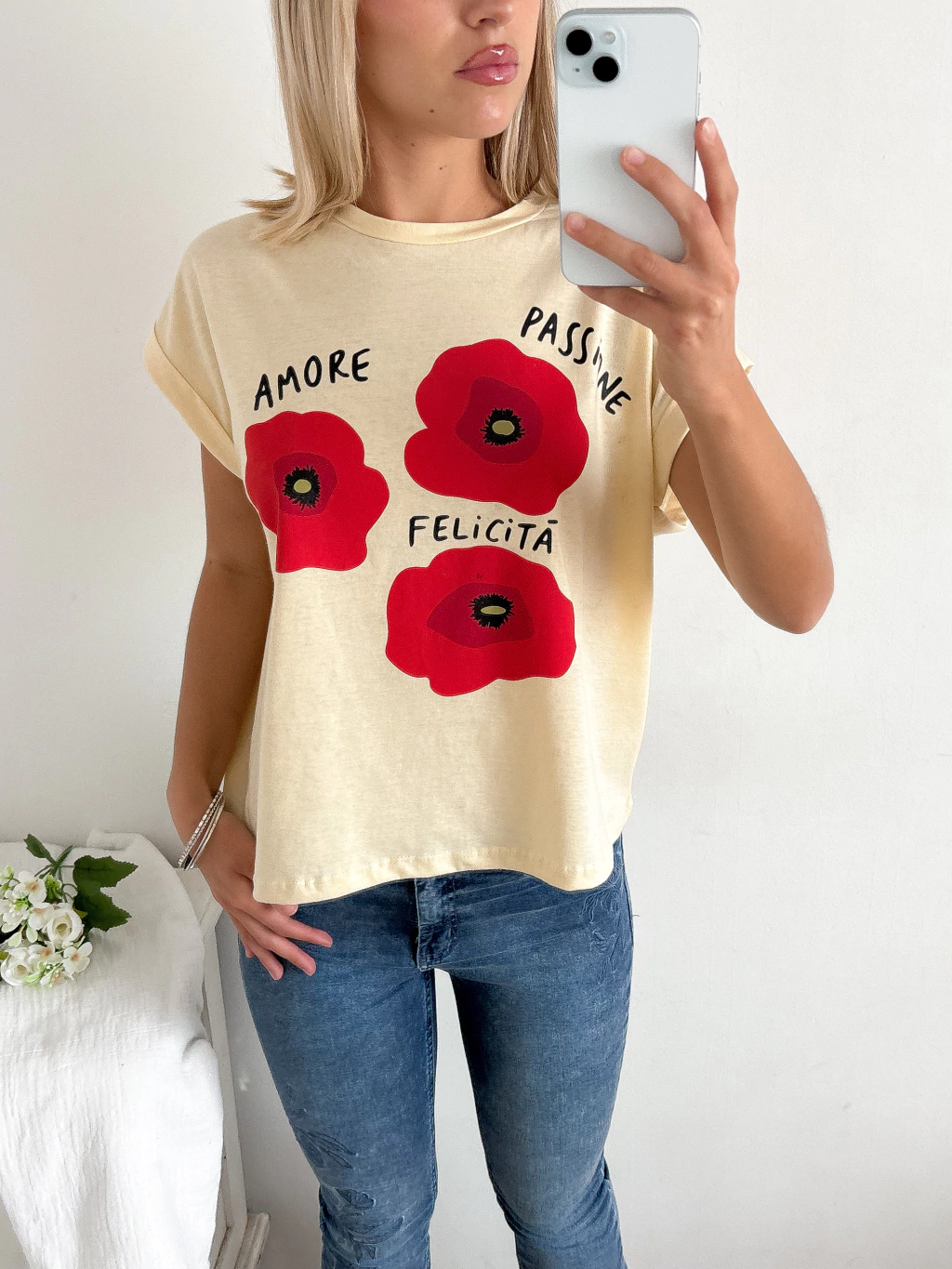 Está hecha en jersey 100% algodón, super suave, con mangas rebatibles que no aprietan ni molestan (sí, esas que dejan el brazo libre y cómodo todo el día 🙌). Escote redondo, largo a la cadera y un calce holgadito que queda bien con jeans, shorts o faldas.