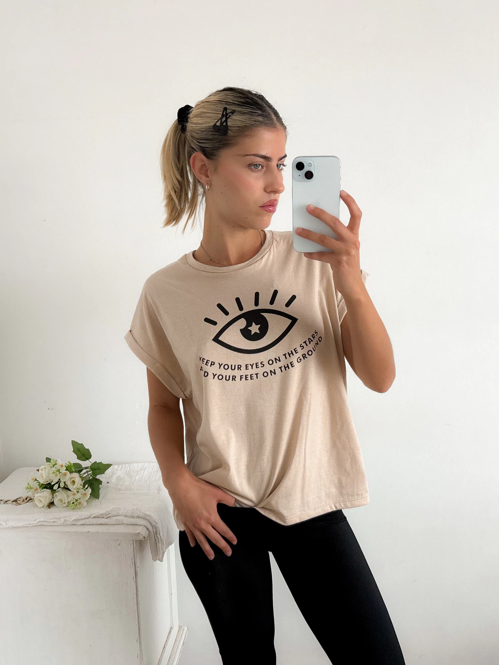 Está hecha en jersey 100% algodón, super suave, con mangas rebatibles que no aprietan ni molestan (sí, esas que dejan el brazo libre y cómodo todo el día 🙌). Escote redondo, largo a la cadera y un calce holgadito que queda bien con jeans, shorts o faldas.