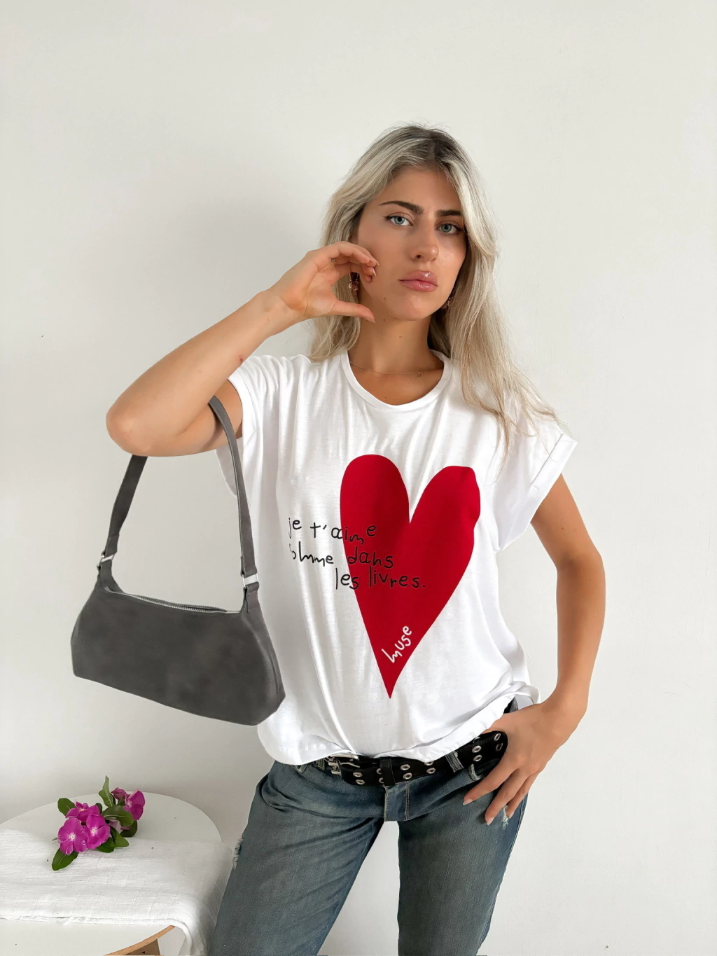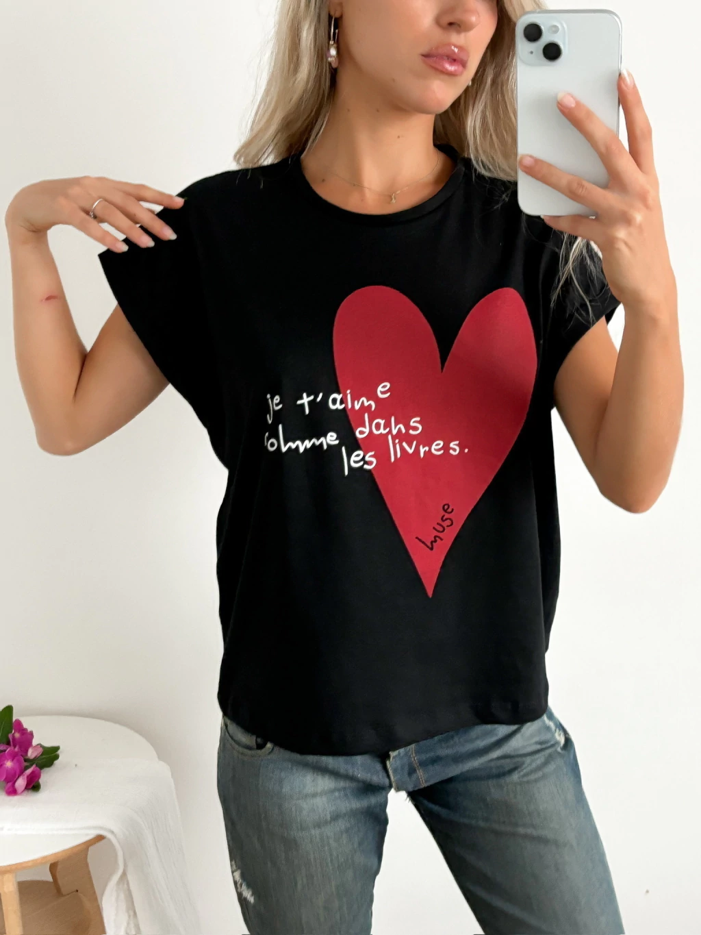 Remera amplia manga rebatible estampa delantera