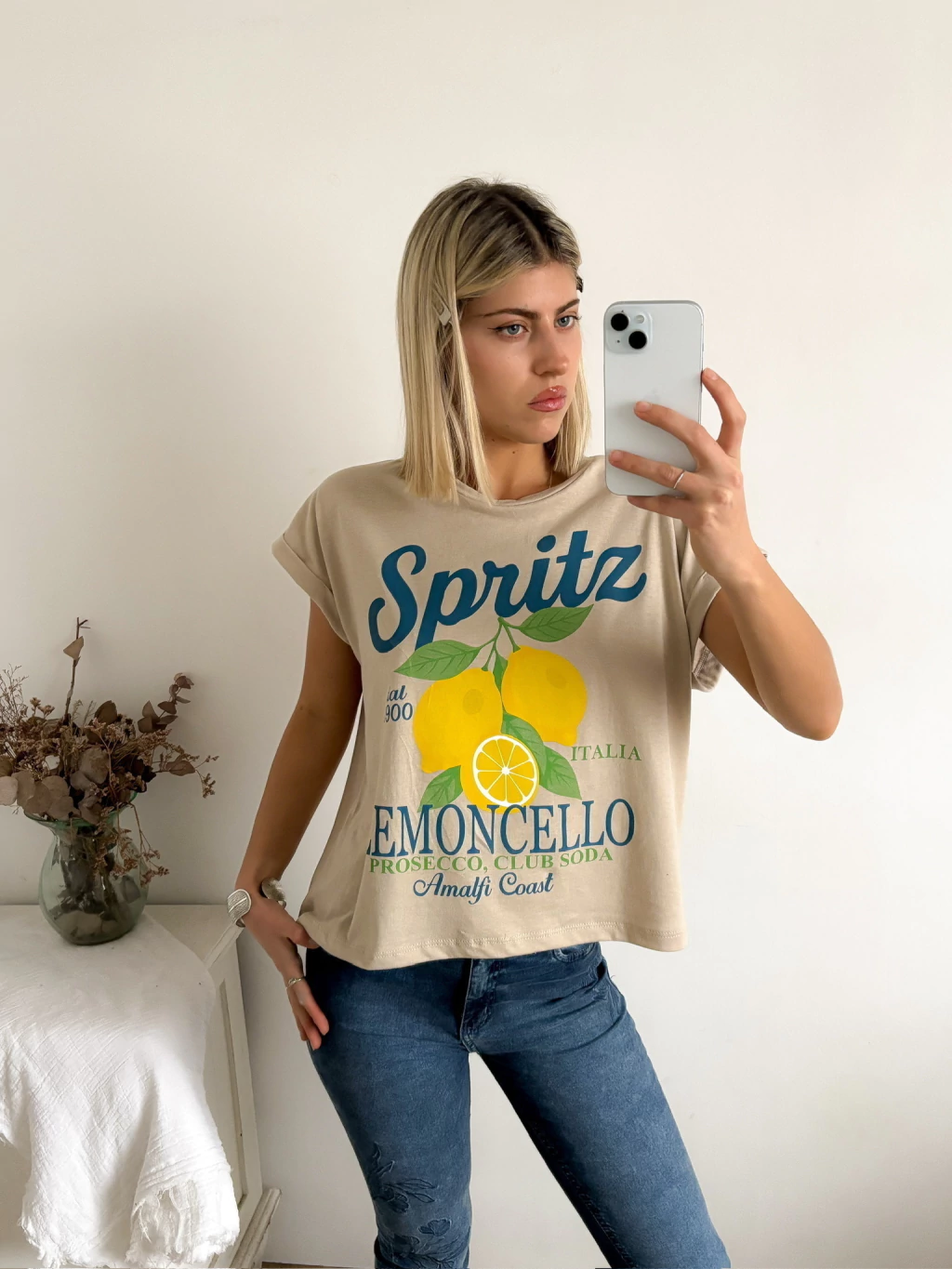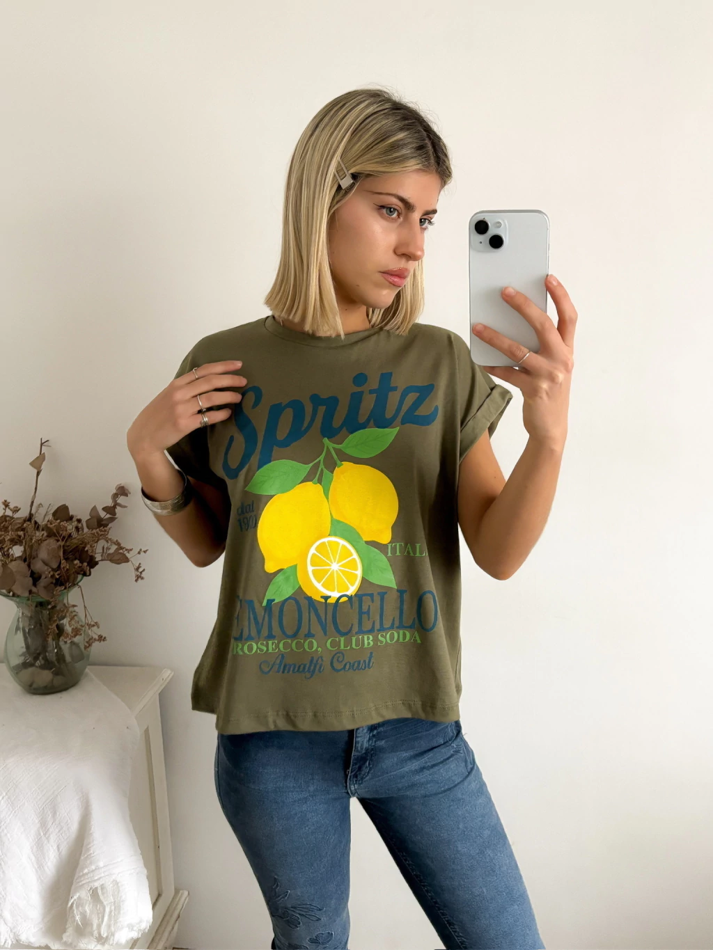 Está hecha en jersey 100% algodón, super suave, con mangas rebatibles que no aprietan ni molestan (sí, esas que dejan el brazo libre y cómodo todo el día 🙌). Escote redondo, largo a la cadera y un calce holgadito que queda bien con jeans, shorts o faldas.