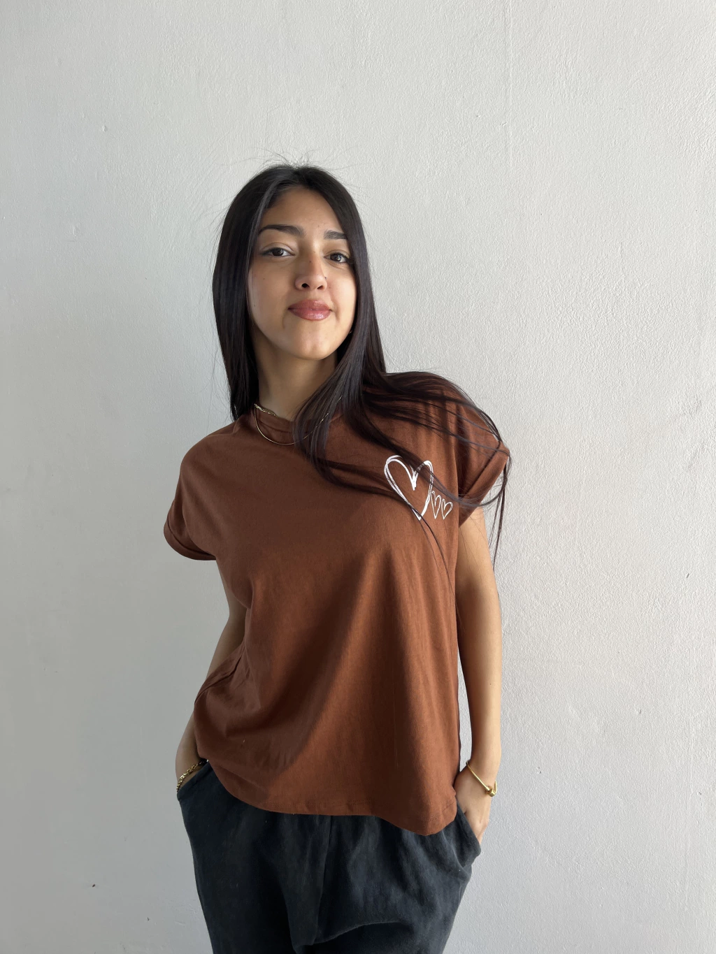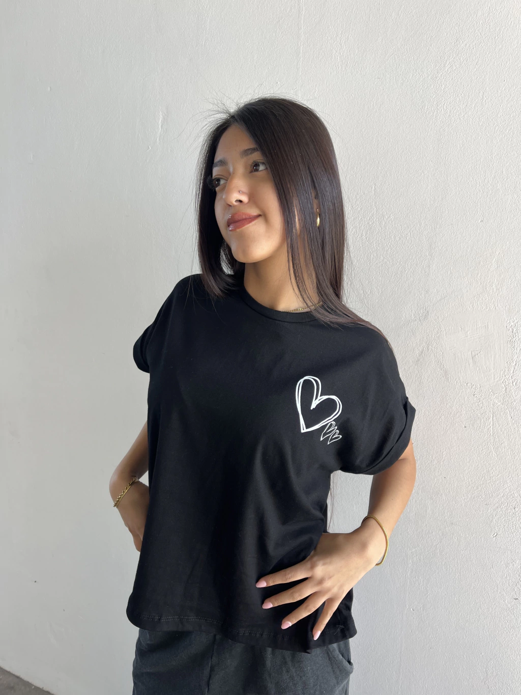 Está hecha en jersey 100% algodón, super suave, con mangas rebatibles que no aprietan ni molestan (sí, esas que dejan el brazo libre y cómodo todo el día 🙌). Escote redondo, largo a la cadera y un calce holgadito que queda bien con jeans, shorts o faldas.