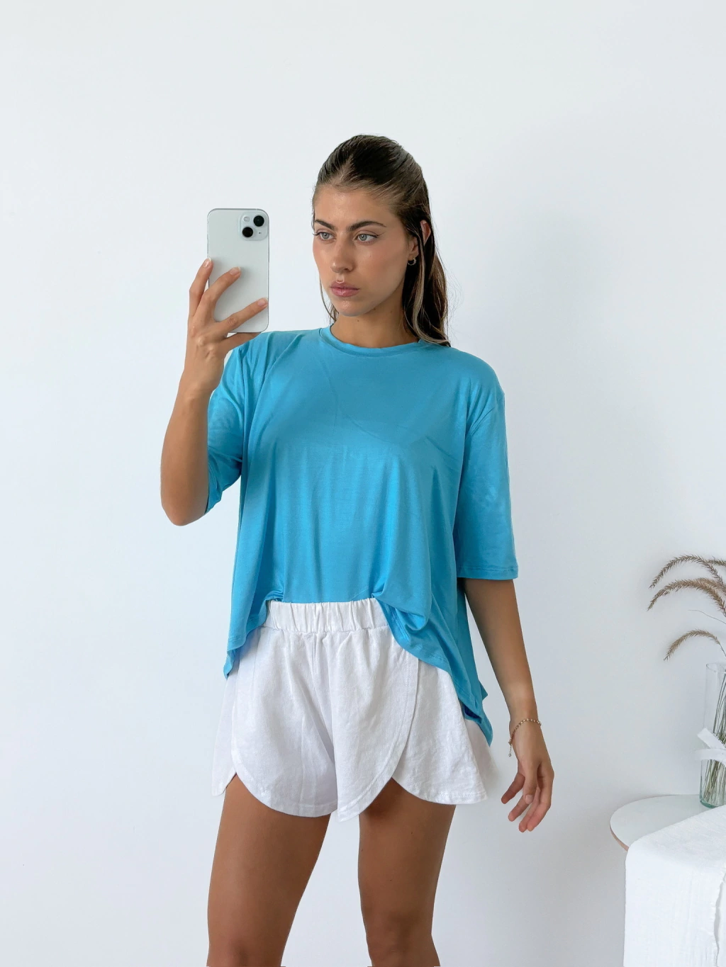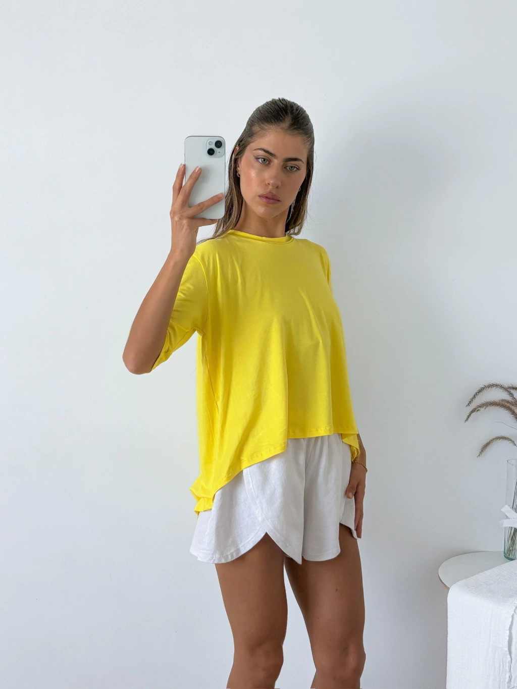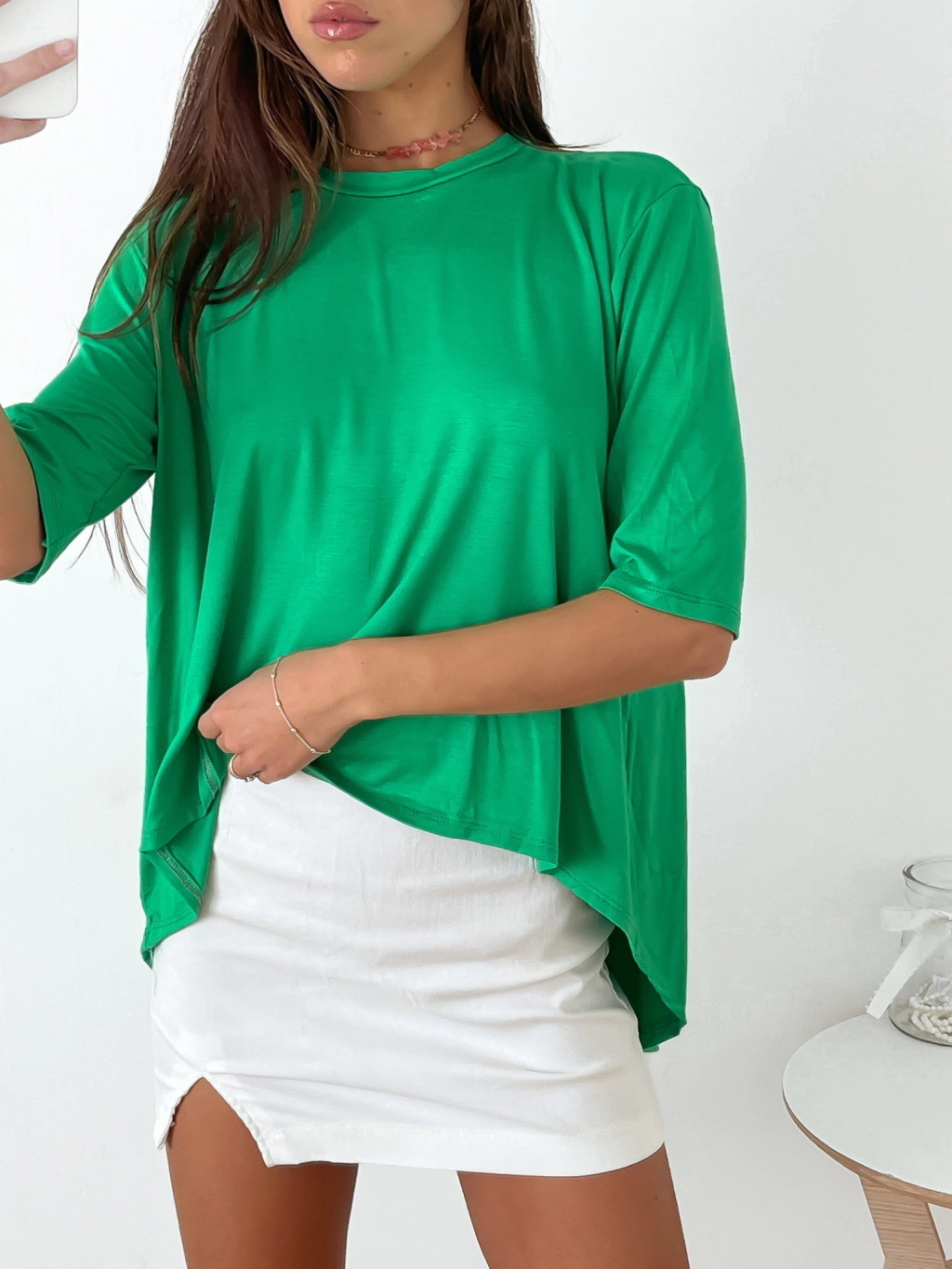 Remera amplia viscosa manga 3/4 con corte irregular