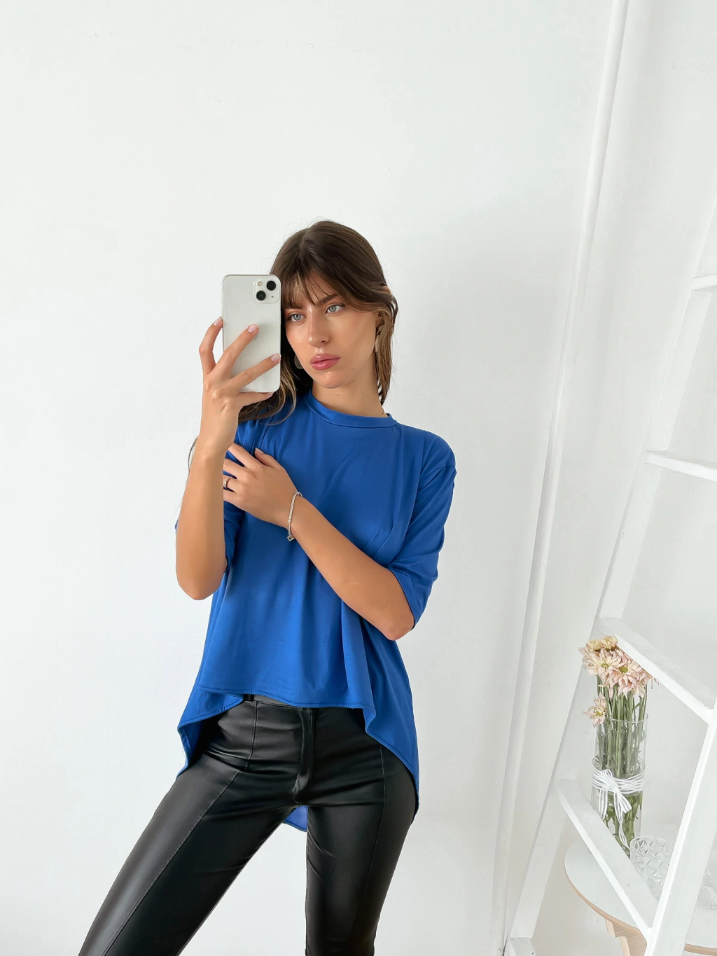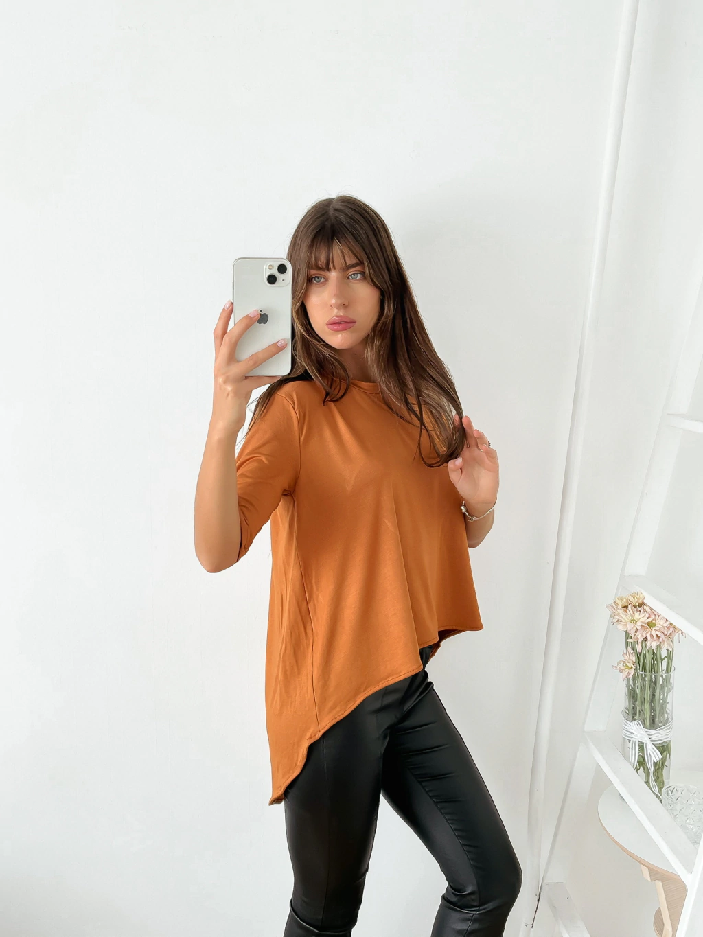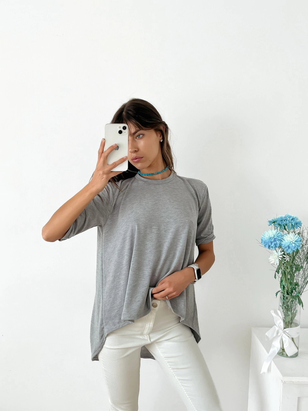 Remera amplia viscosa manga 3/4 con corte irregular