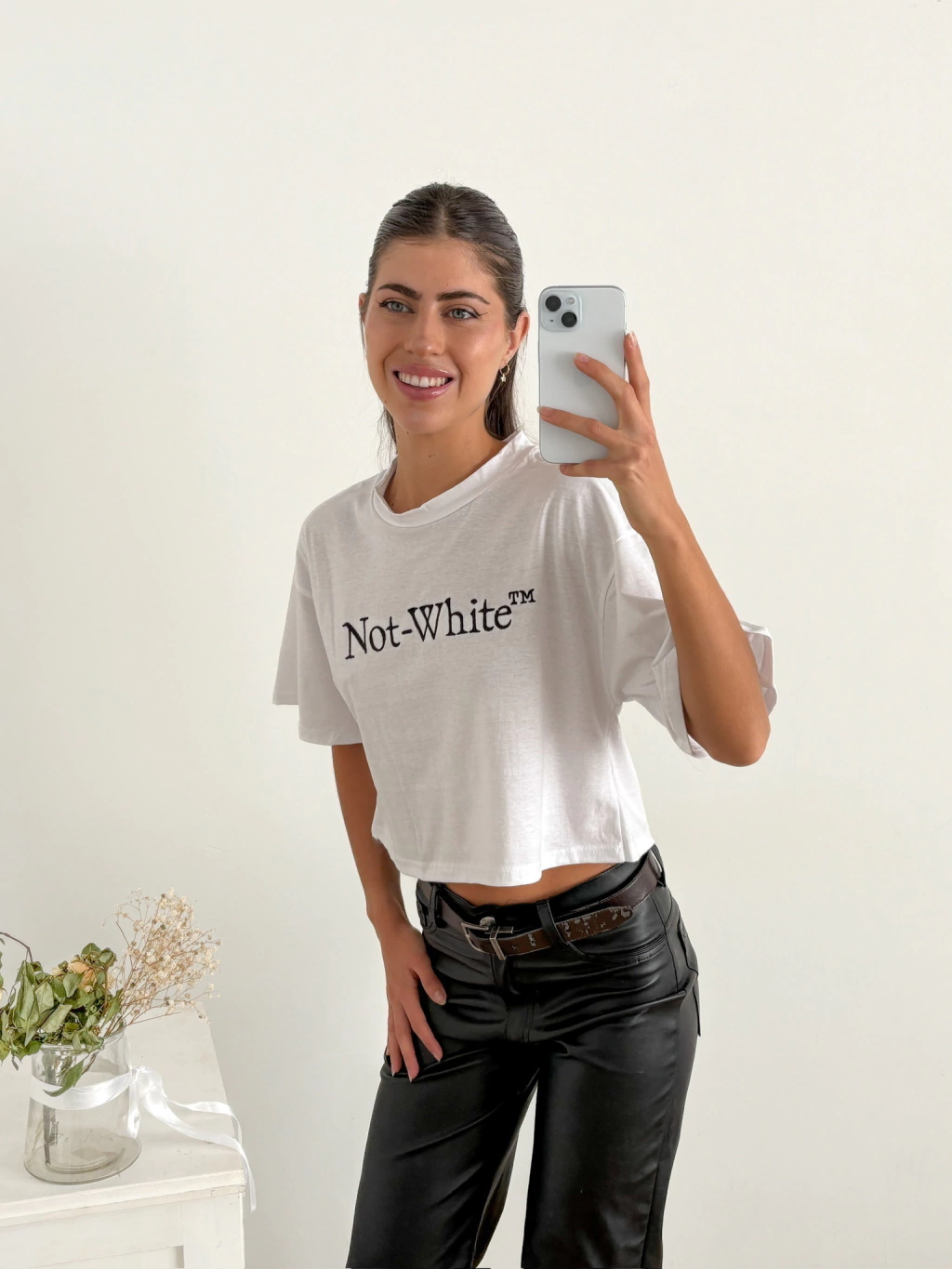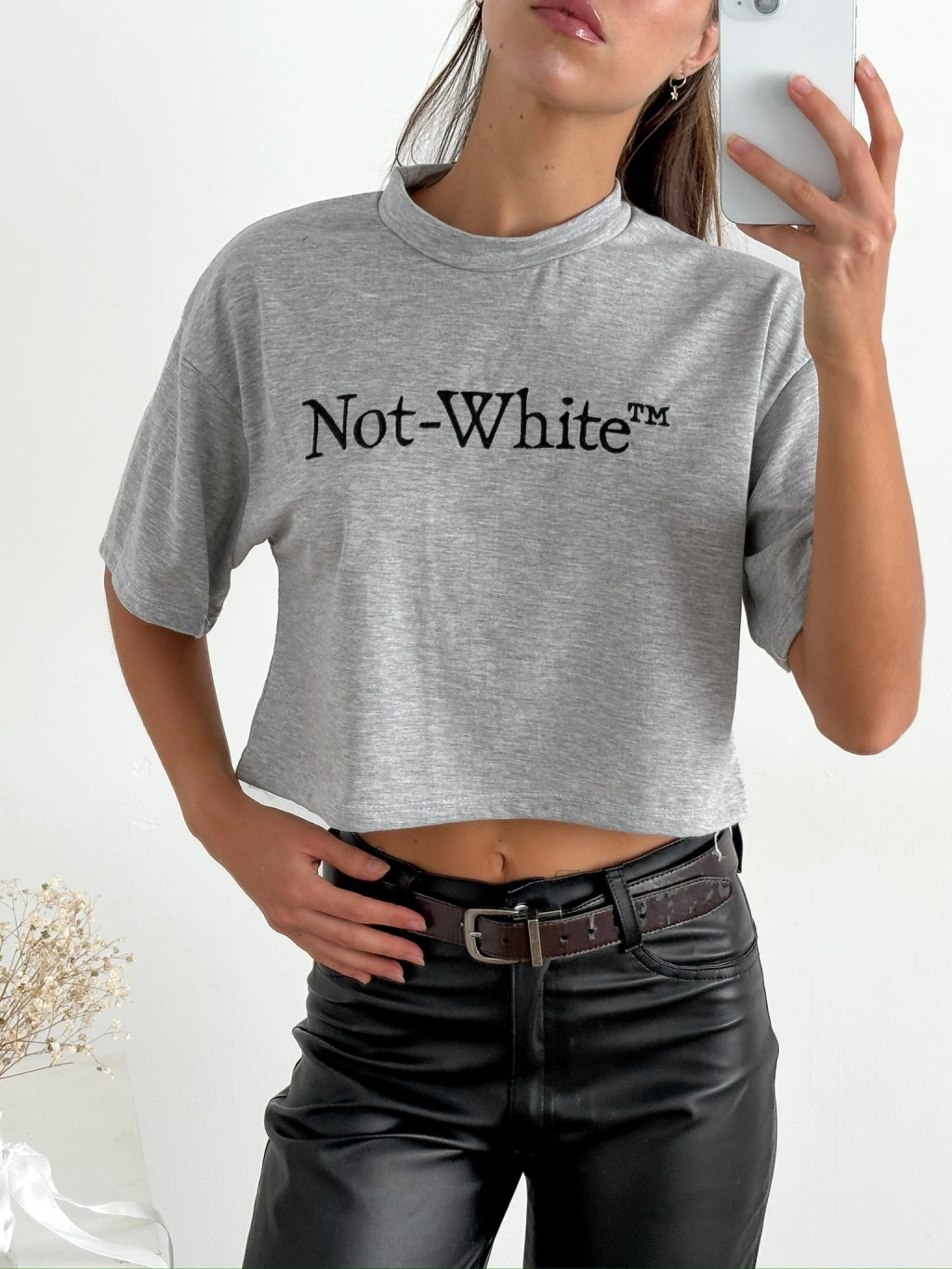 Remera crop amplia manga corta bordada