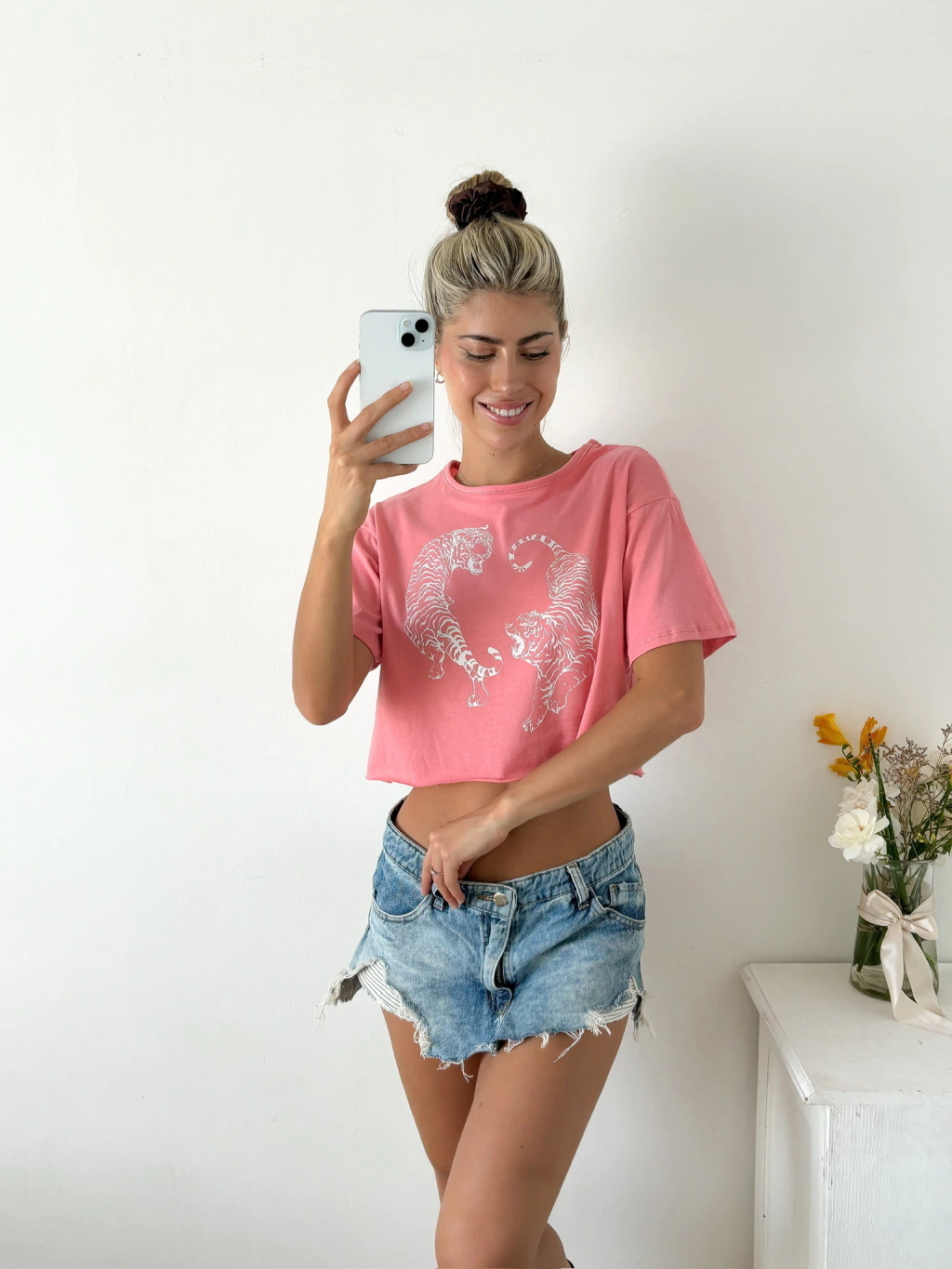 Instrucciones de cuidado: Lavar con agua fria y jabon suave/ No retorcer/ No usar secadora/ Planchar a baja temperatura (no planchar sobre estampa)/ No tender al sol