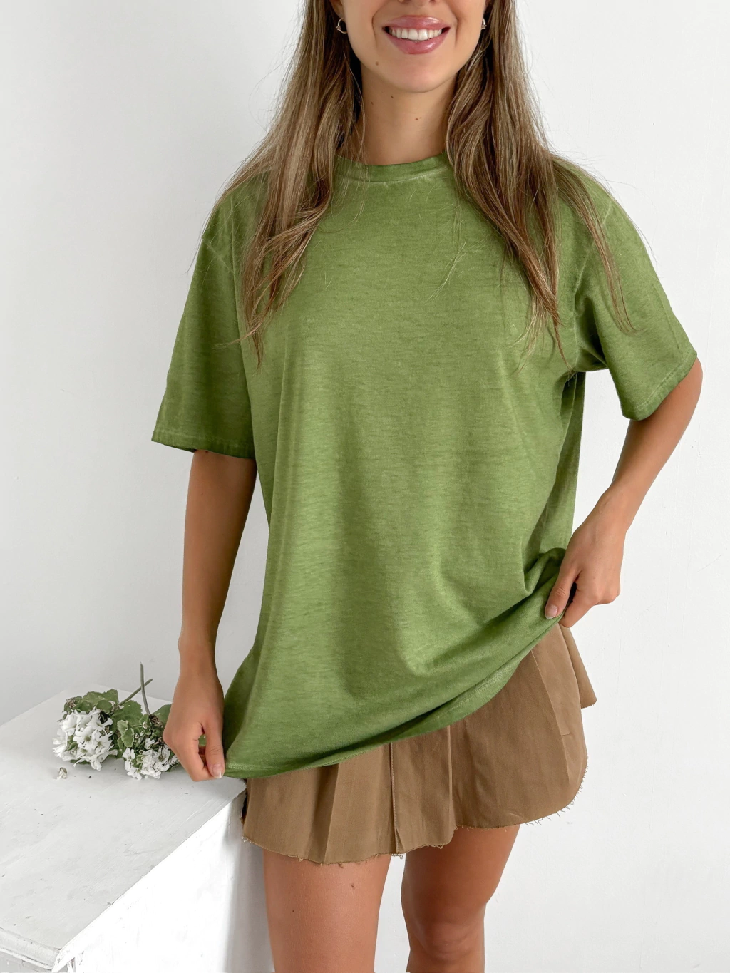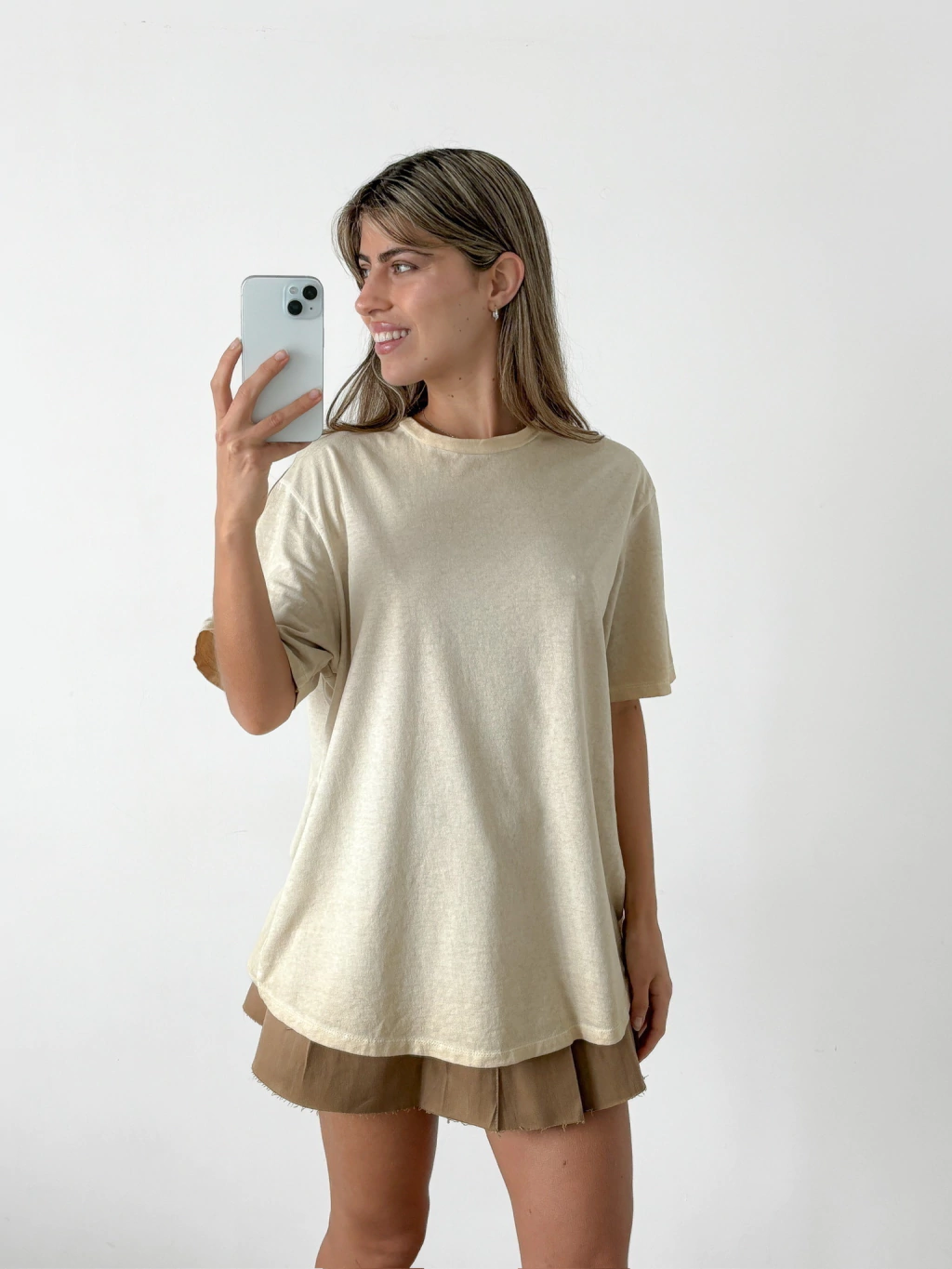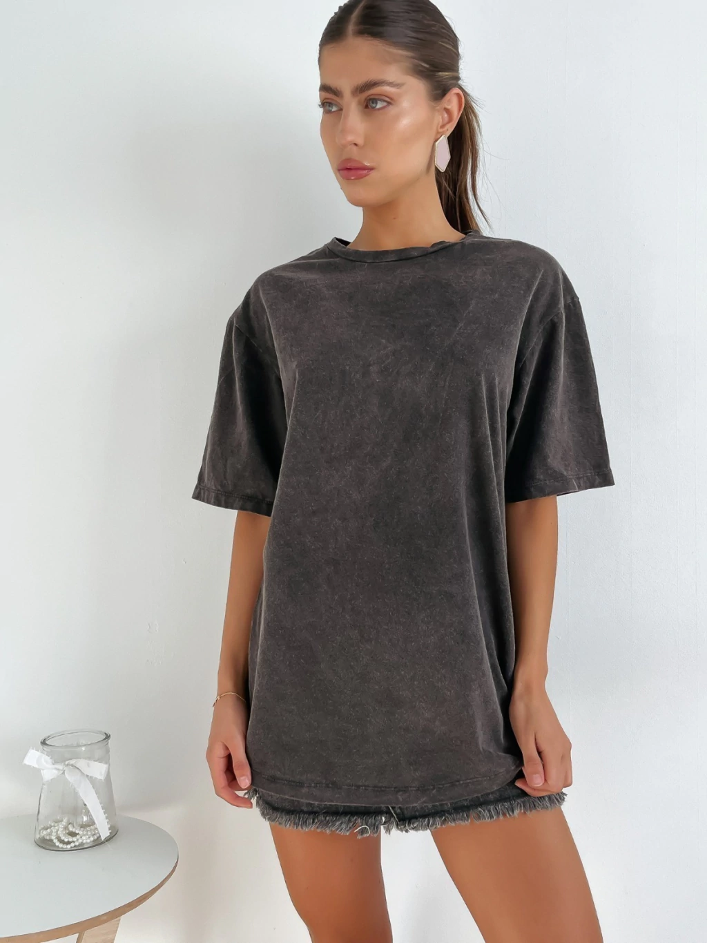 Remera ancha desgastada con terminación redondeada