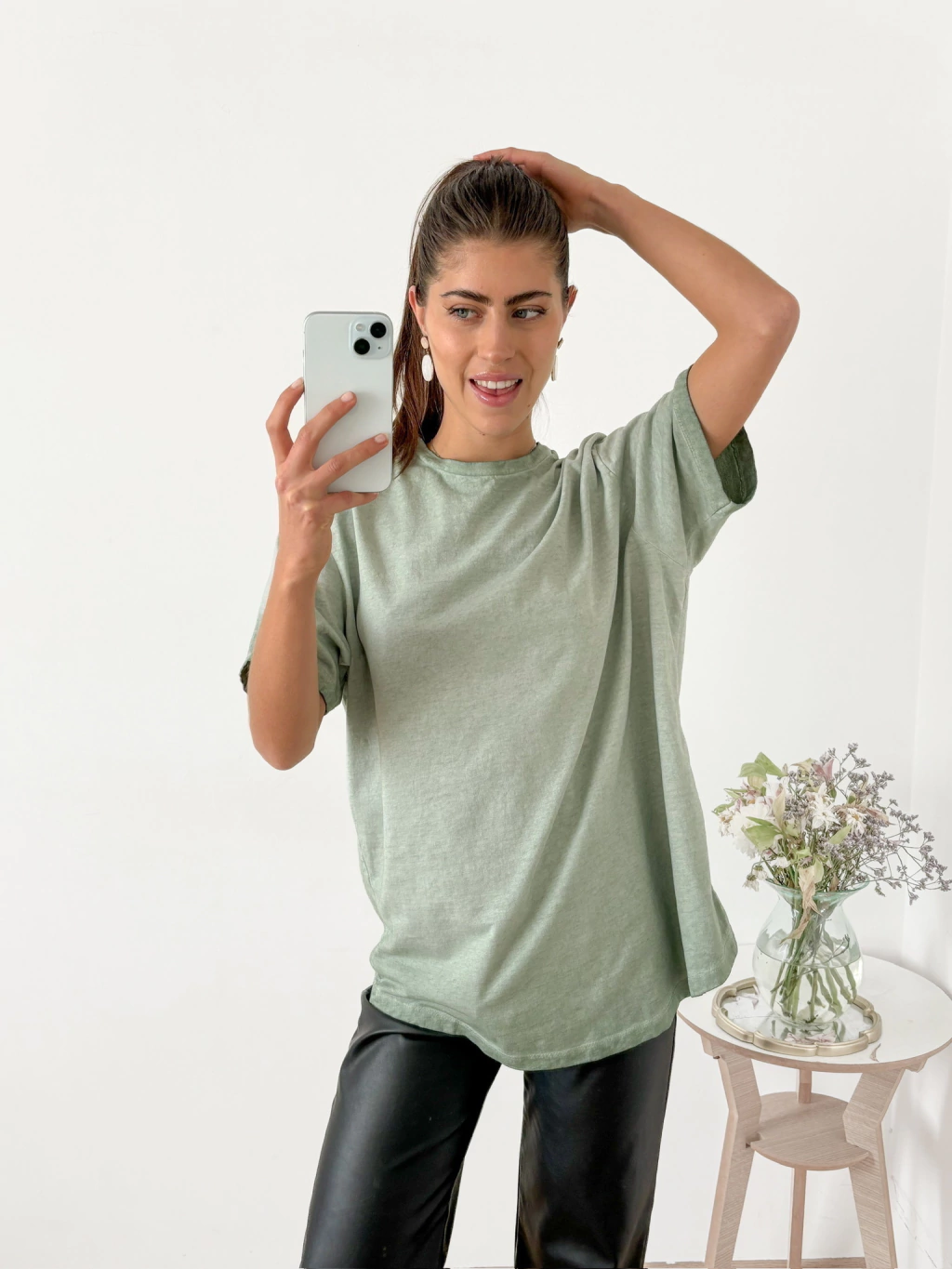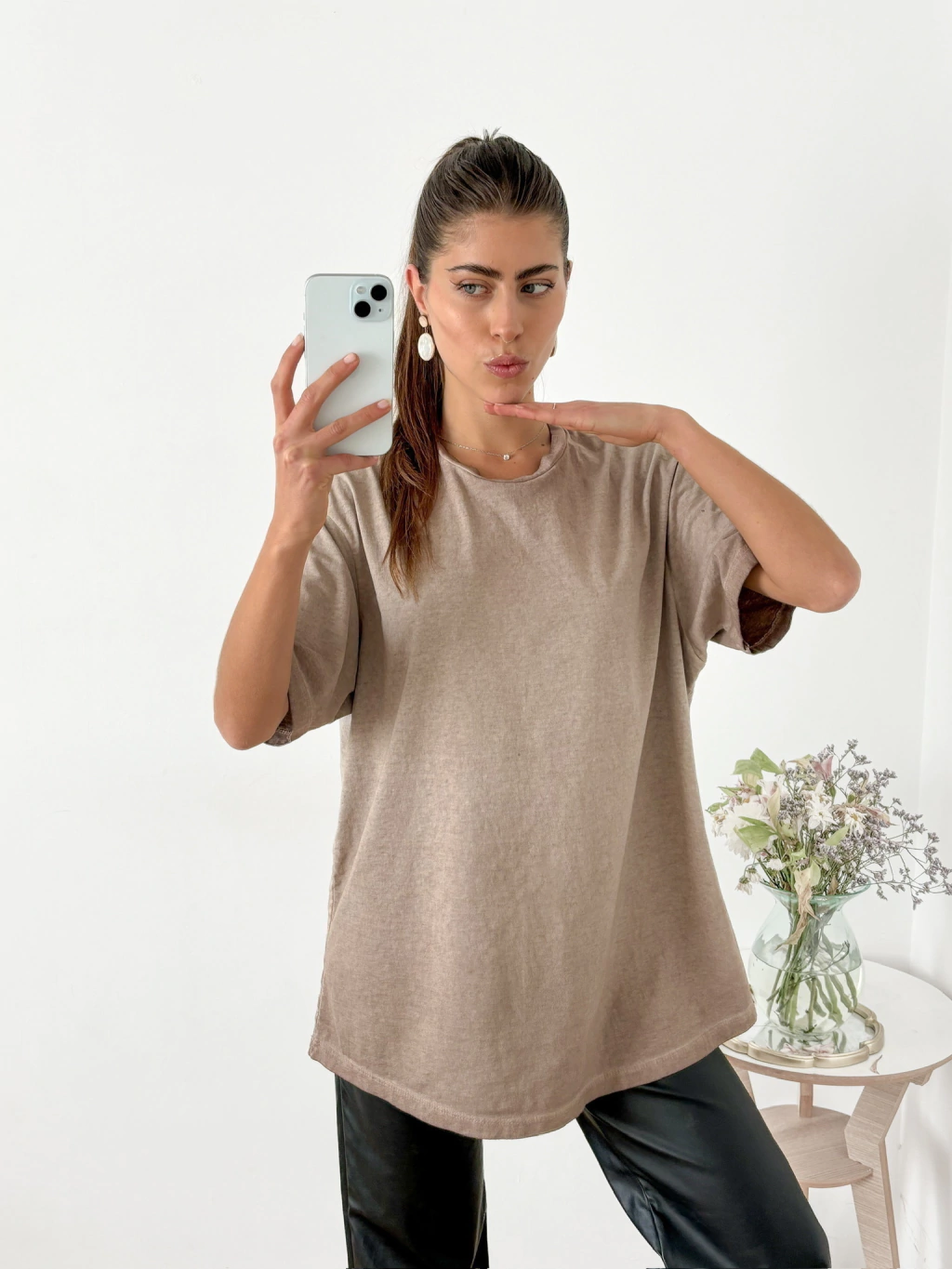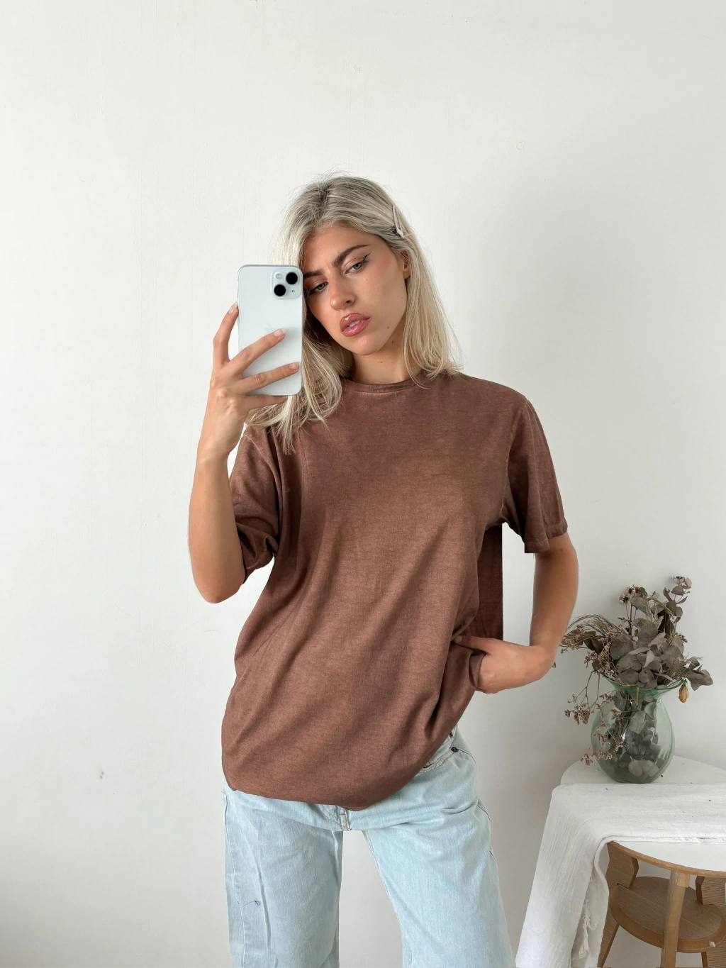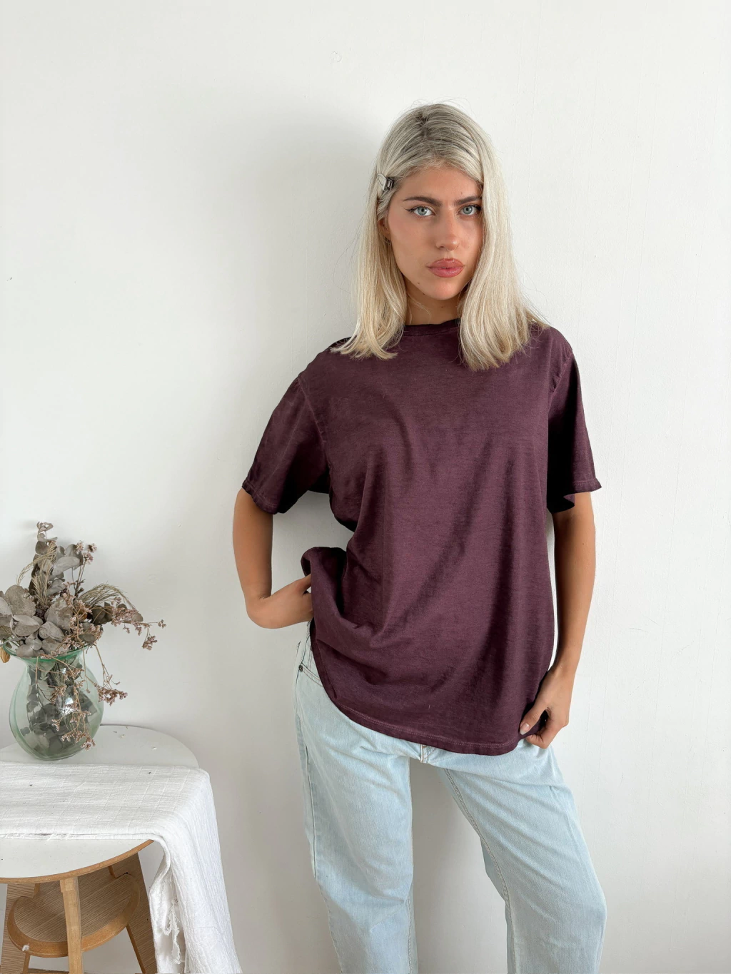 Remera ancha desgastada con terminación redondeada