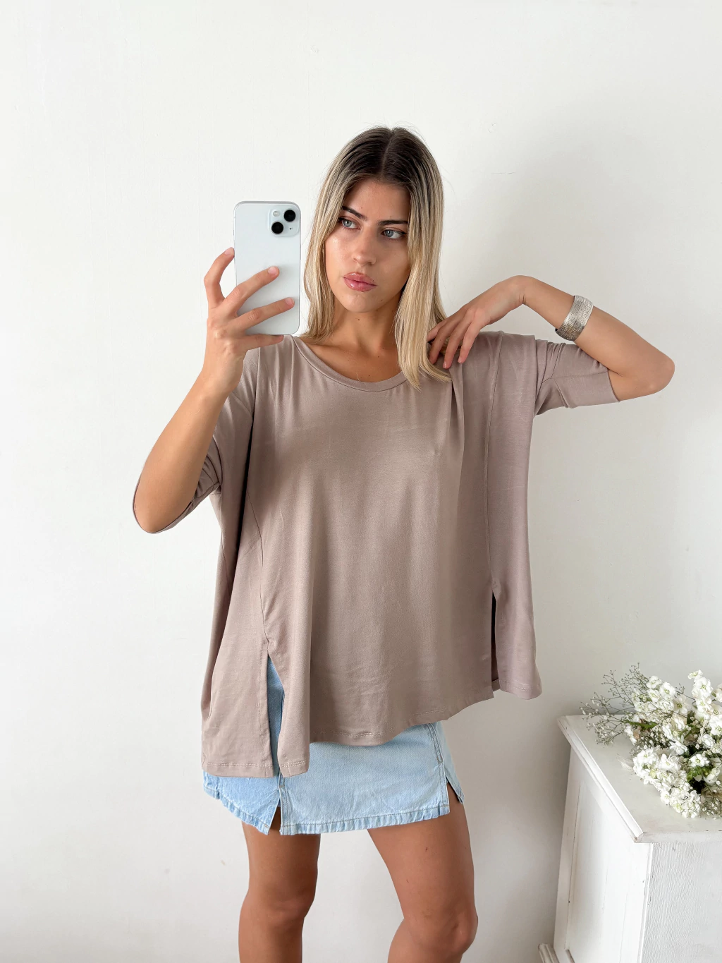 Largo por debajo de la cadera, perfecto para usar con jeans, leggings o bikers. Una prenda básica pero con mucha onda 💫