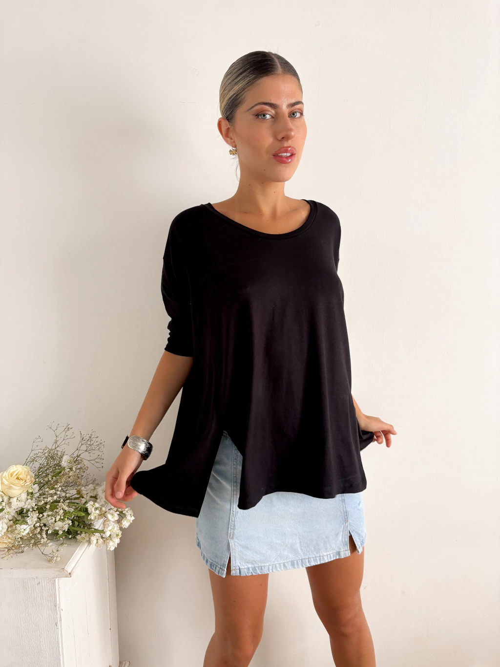 Largo por debajo de la cadera, perfecto para usar con jeans, leggings o bikers. Una prenda básica pero con mucha onda 💫