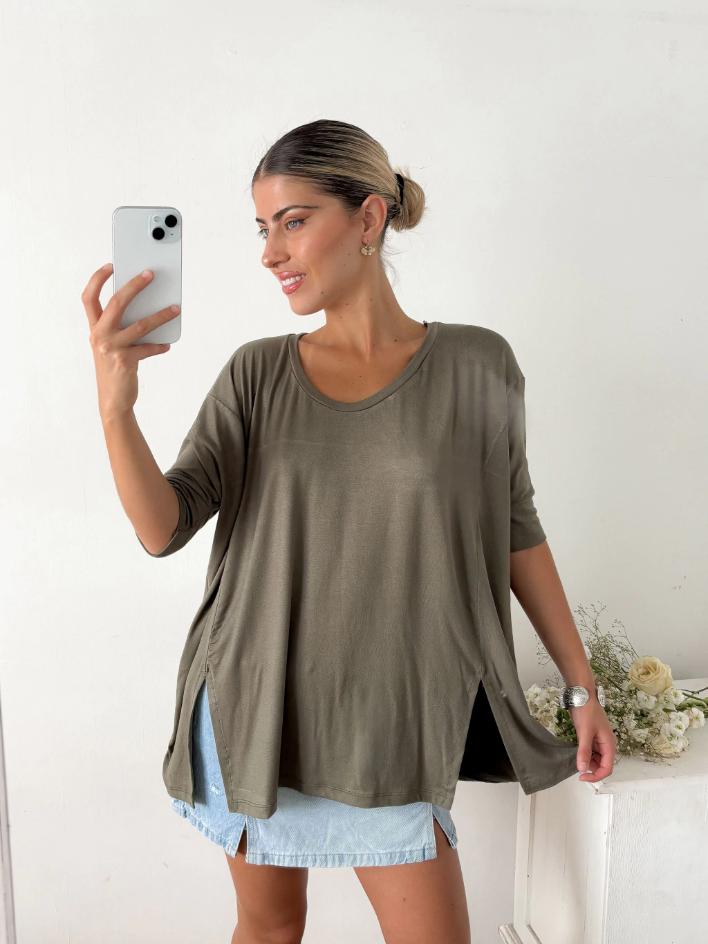 Este remerón es la definición de comodidad con estilo 🤩 Tiene una textura ultra suave y fluida. Su diseño amplio, los tajos laterales y el escote en V le dan un toque moderno y relajado, ideal para todos los días🌟
