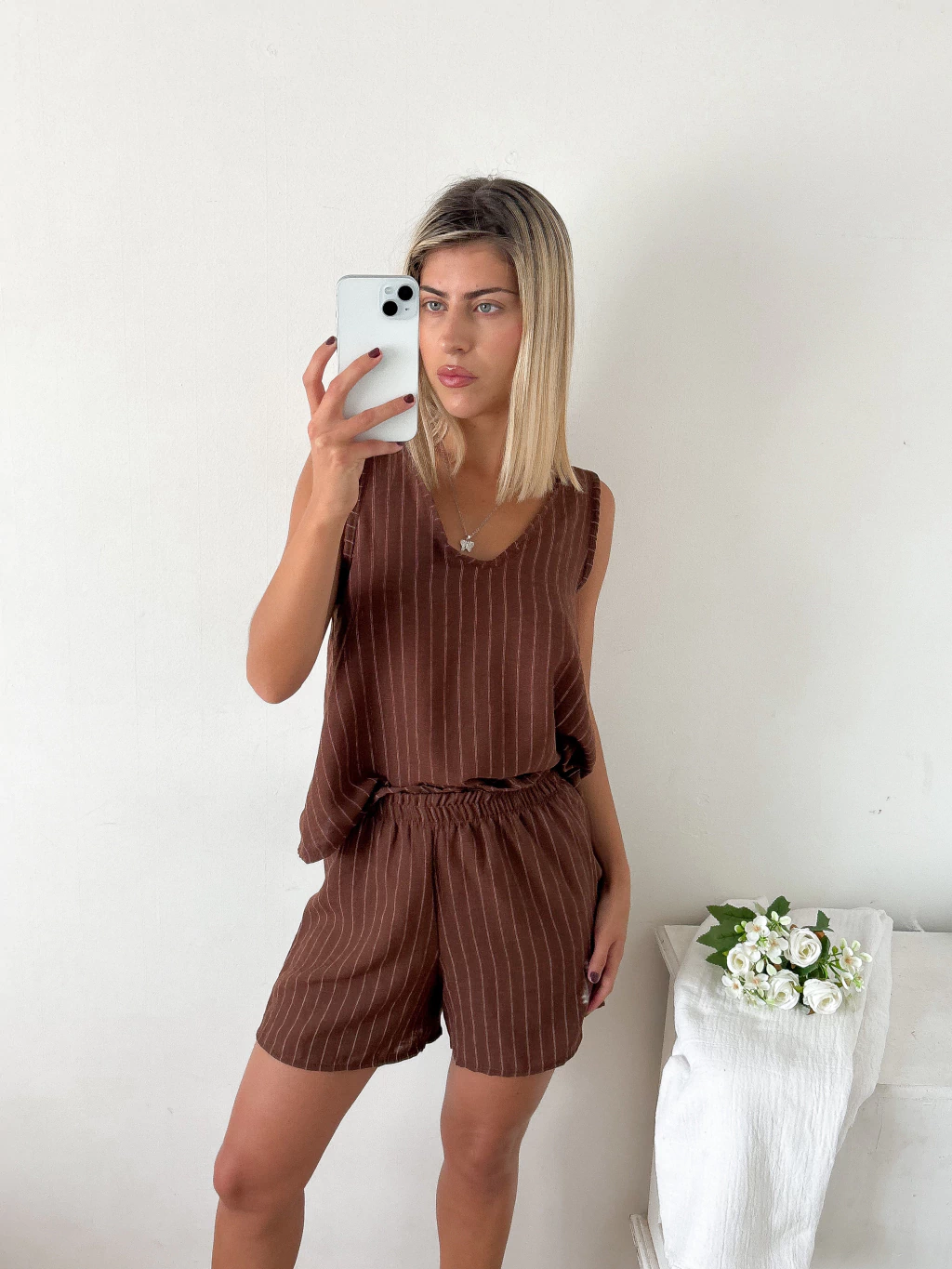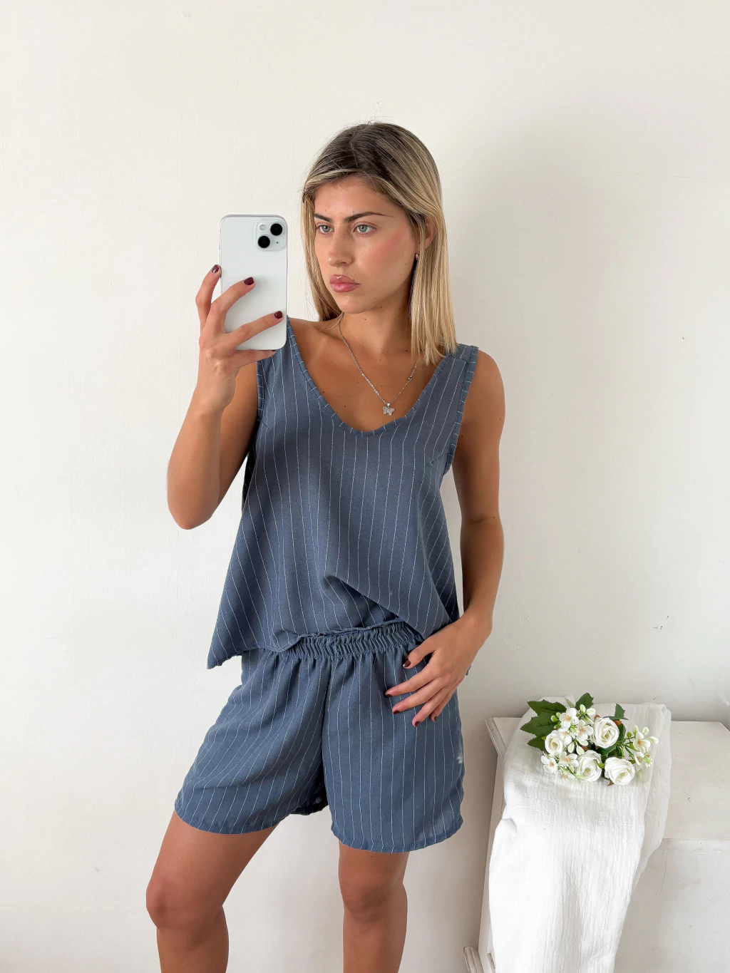 Las rayas son un clásico que volvió con todo 😍 y hacen que se vea moderno, relajado y fácil de combinar. Podés usarlo con remeras o camisas lisas para un look más casual, o armar el conjunto completo con la Blusa lino escote en V corte evase Mollet, que queda espectacular 😍