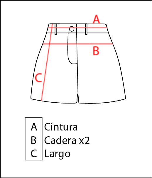 TALLE M: (A)CONTORNO CINTURA: 64CM/ (B)CONTORNO DE CADERA: 106CM / (C)LARGO 31CM
