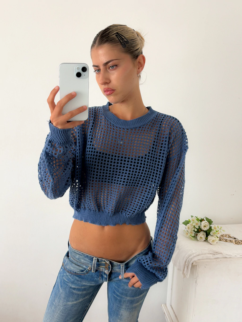 Este sweater te da ese toque canchero y sexy a la vez✨ Confeccionado en tejido calado, súper liviano y fresco 🌬️