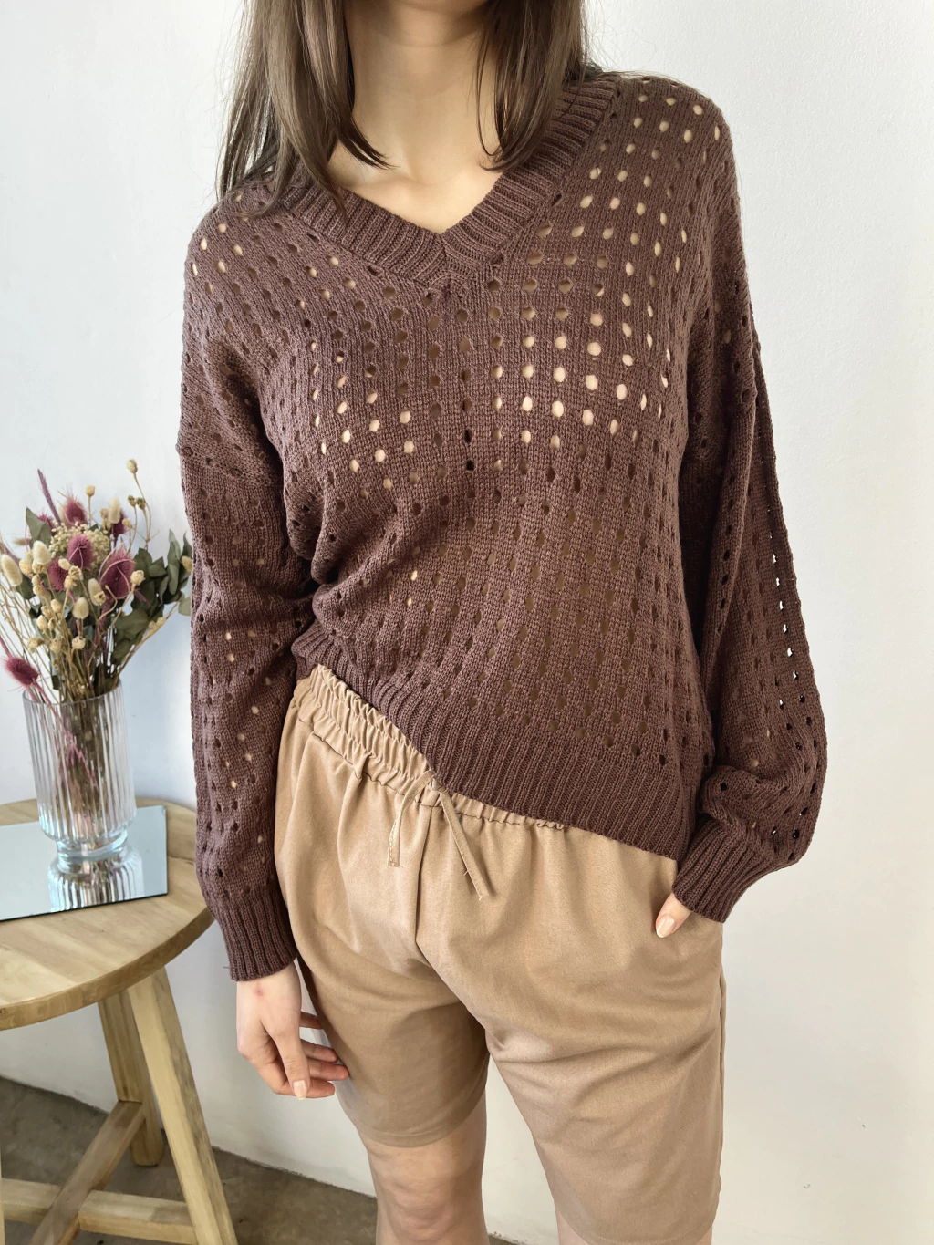 Sweater calado escote en V