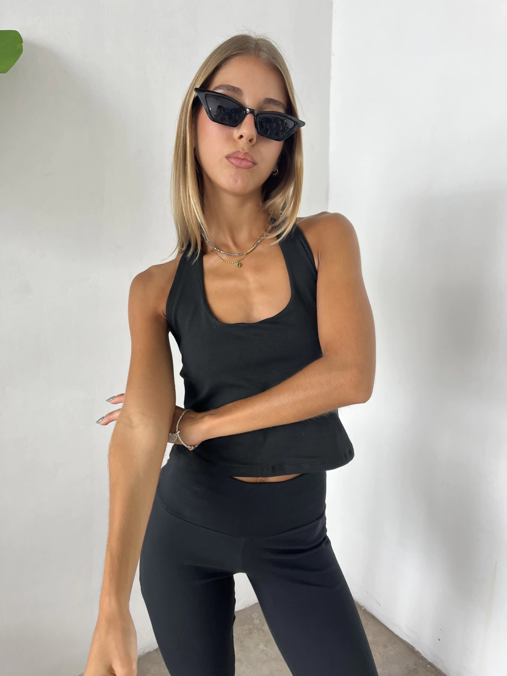 Top algodón con lycra escote en U al cuello, espalda descubierta