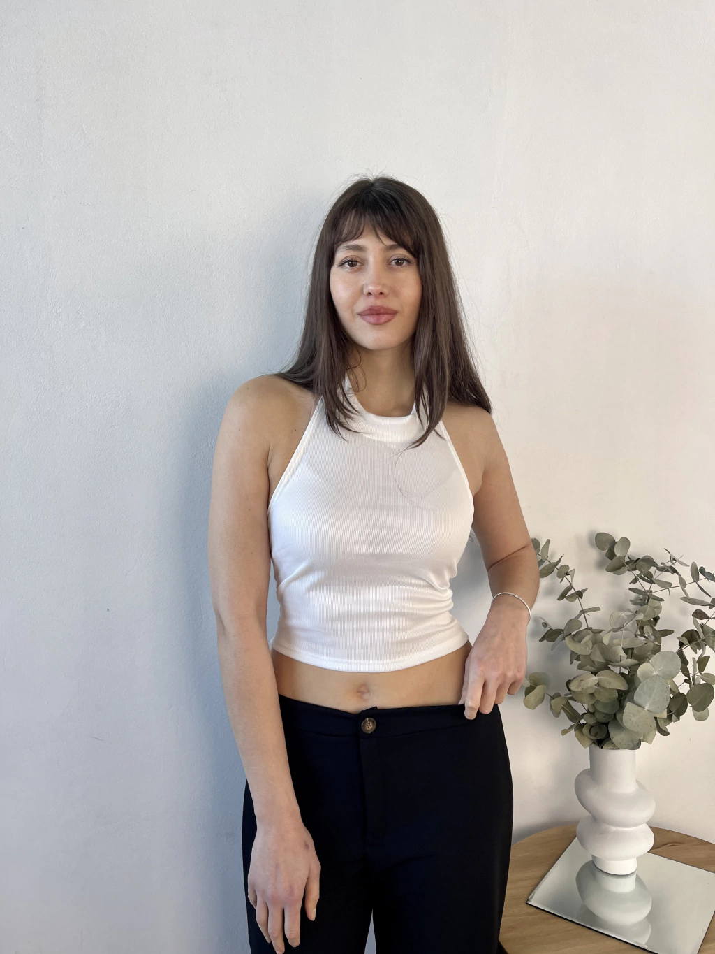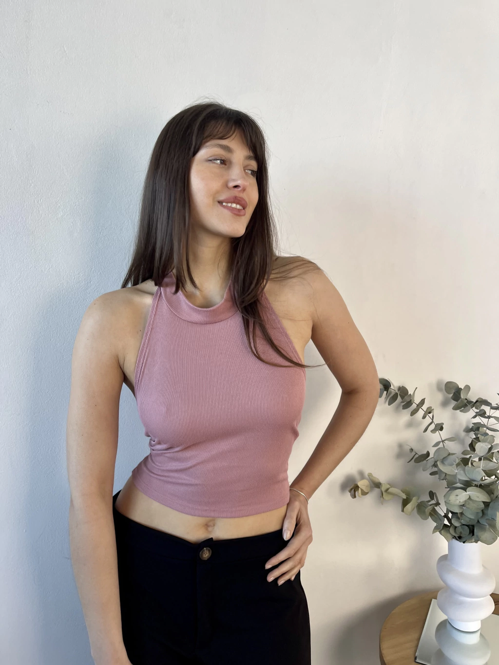 Top ribb escote halter con cuello media polera y espalda descubierta