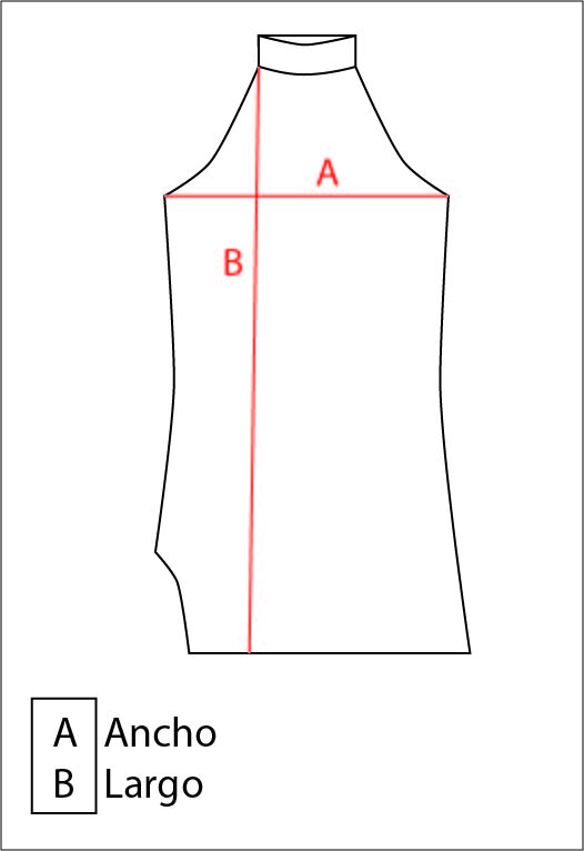 MEDIDAS: (A) ANCHO DE SISA A SISA: 35CM / (B) LARGO: 39CM