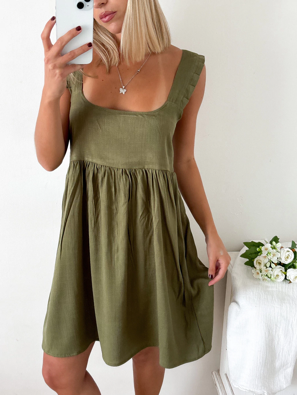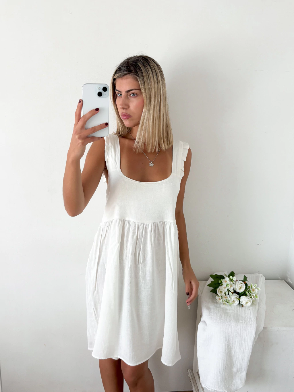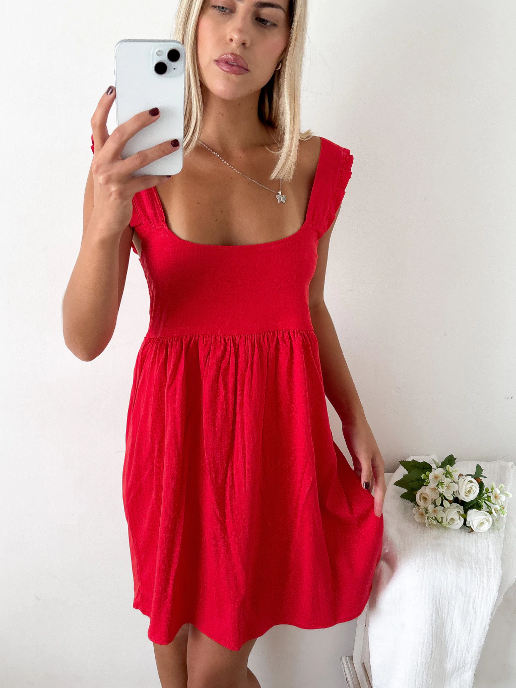 Este vestido tiene todo lo que amamos: es fresco, cómodo y con ese movimiento que lo hace súper femenino 💕 El escote cuadrado le da un toque elegante, mientras que los breteles con voladitos lo vuelven romántico y delicado 🌸