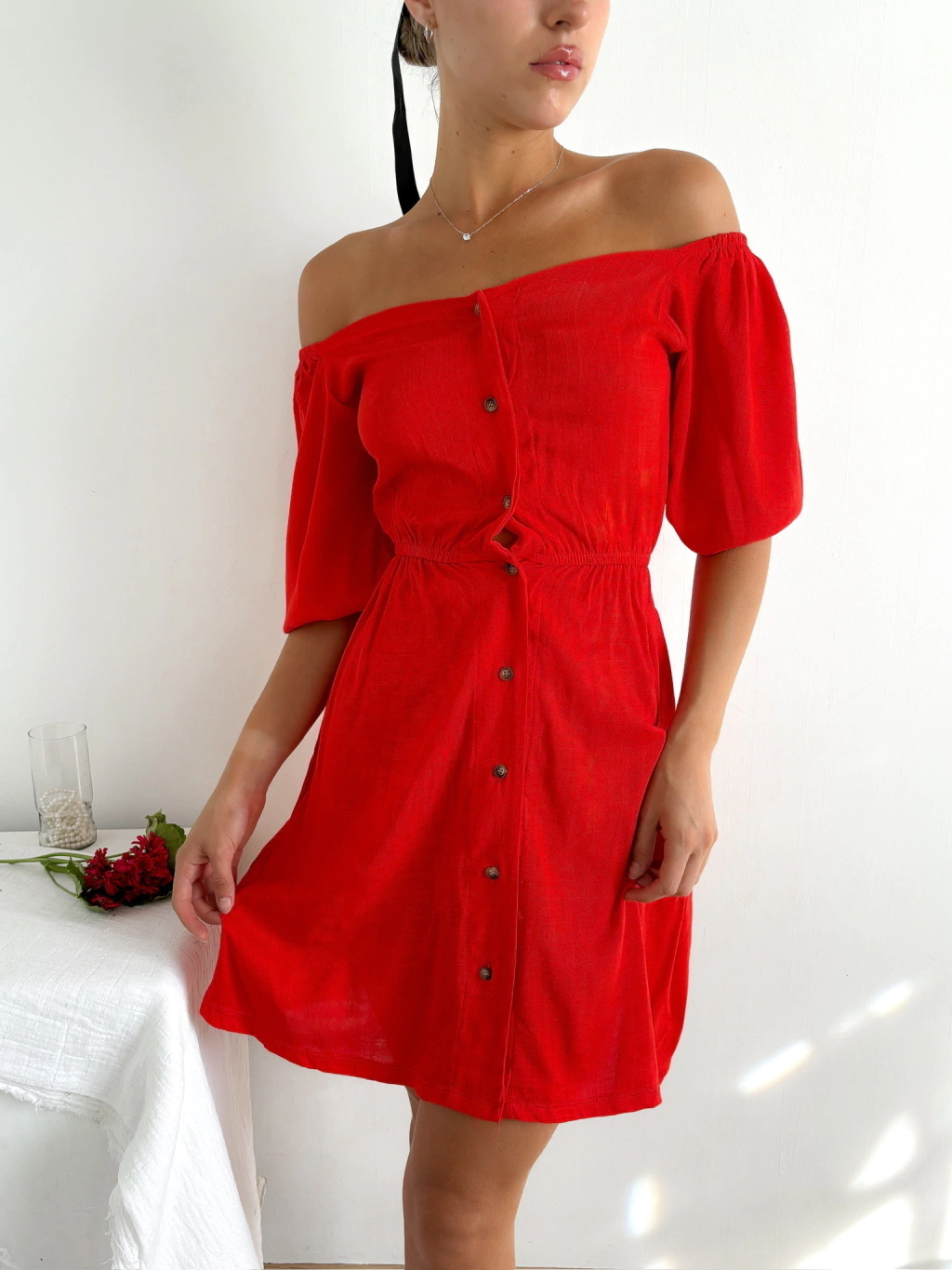 Vestido de lino spandex manga princesa con elástico en la cintura