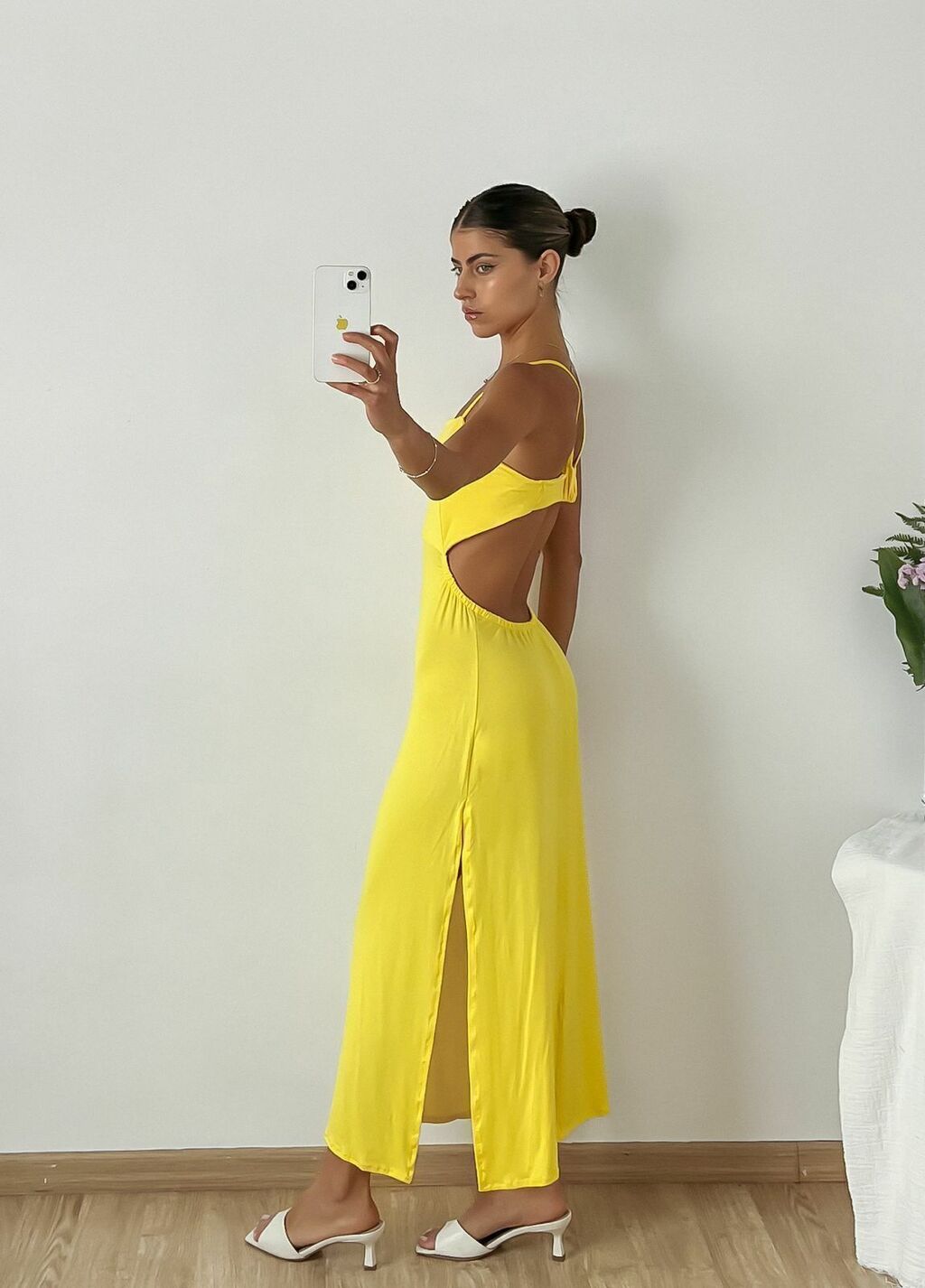 Vestido modal viscosa midi con tajos laterales y espalda descubierta con sustracción.